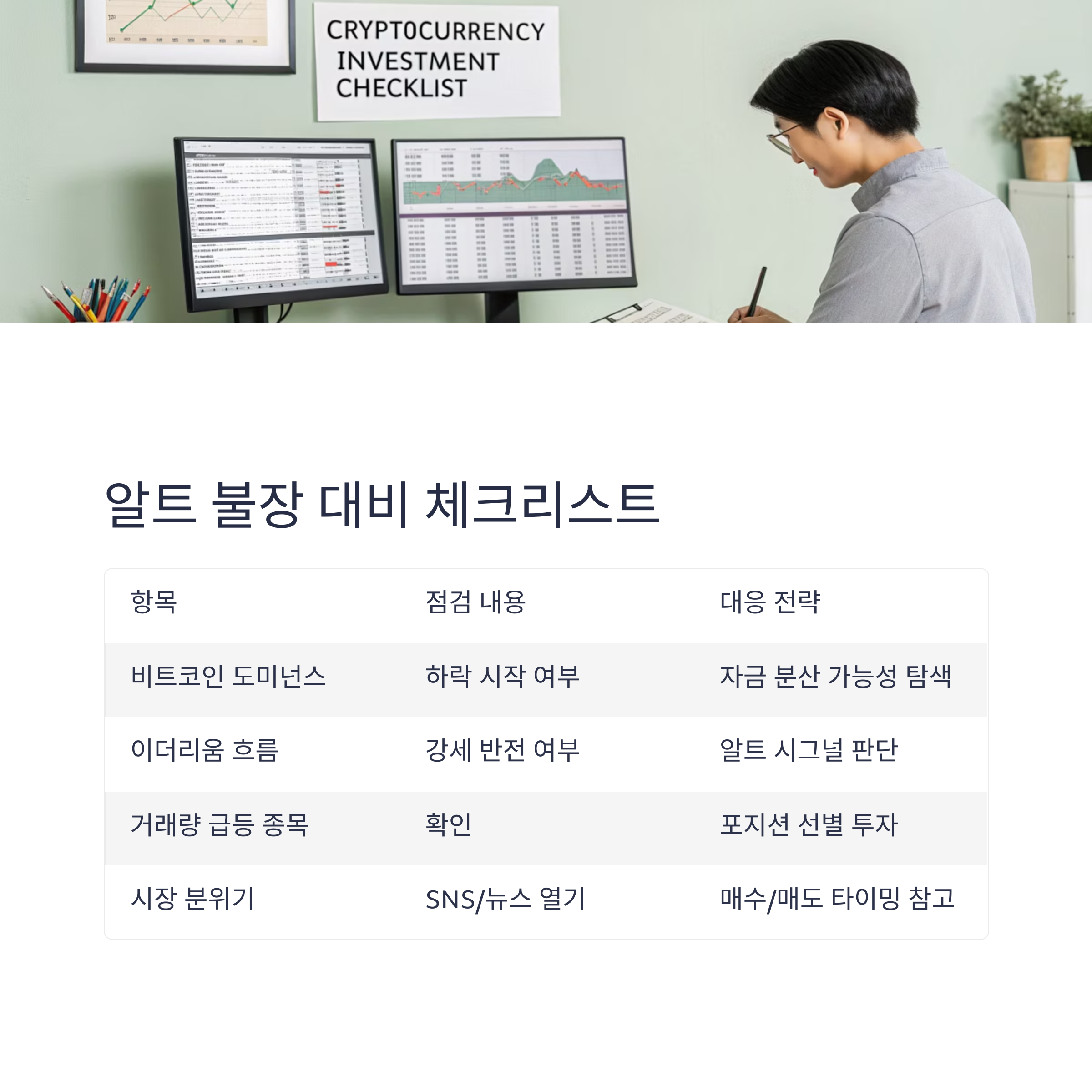 핵심 요약: 알트 불장 대비 체크표