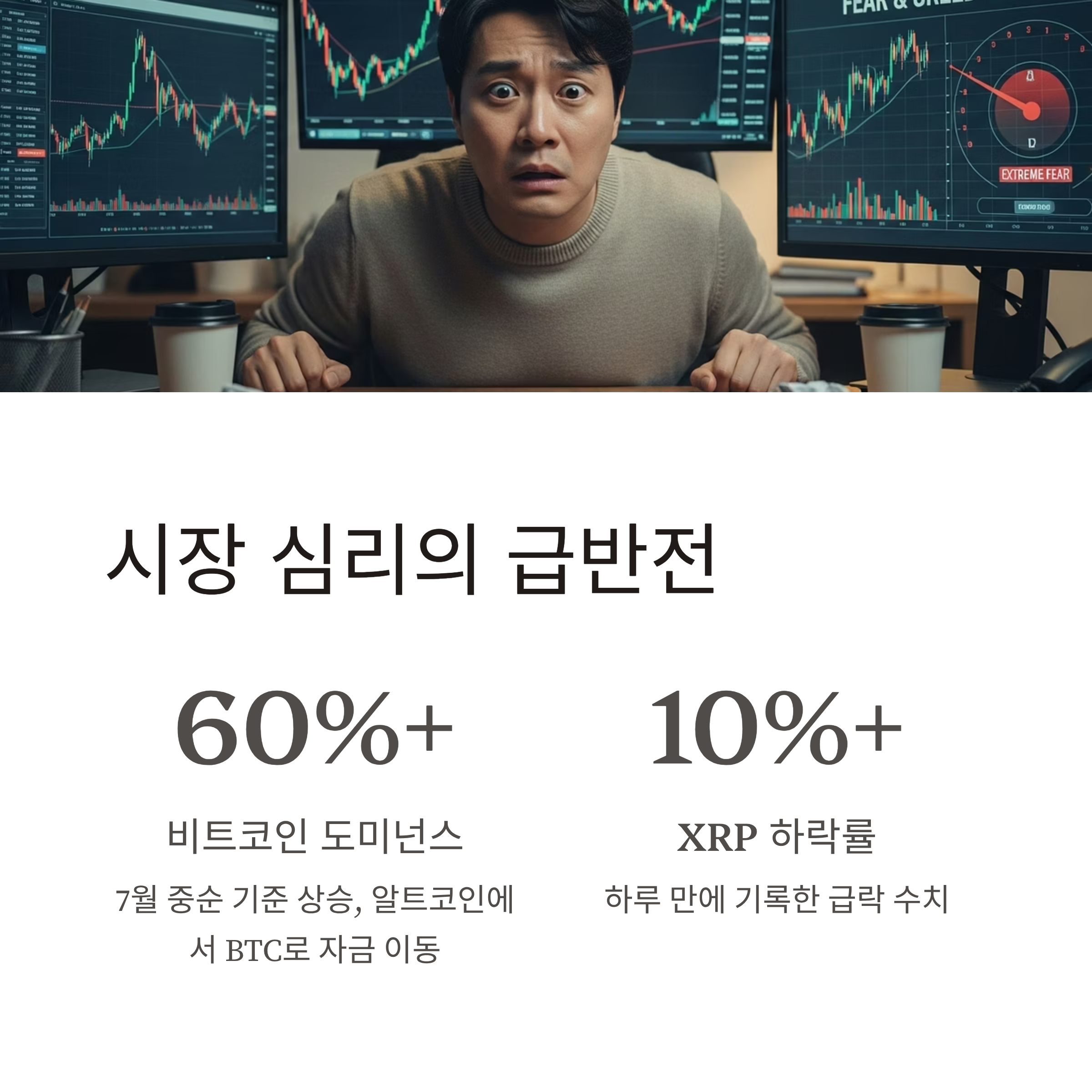 2025년 7월, 암호화폐 시장에서 알트코인들의 대규모 폭락이 발생하면서 투자자들의 심리가 크게 흔들리고 있습니다. 특히 리플(XRP), 이더리움(ETH), 솔라나(SOL), 도지코인(DOGE) 등 주요 알트코인들이 일제히 급락세를 보이며 하락장이 장기화되는 것이 아니냐는 우려가 제기되고 있습니다. 이번 포스트에서는 이번 폭락의 원인을 기술적, 펀더멘털, 심리적 관점에서 분석하고, 대표 코인들의 움직임과 글로벌 전문가들의 향후 전망을 토대로 초보자와 중급 투자자에게 도움이 될 수 있는 3단계 대응 전략을 정리해드립니다.