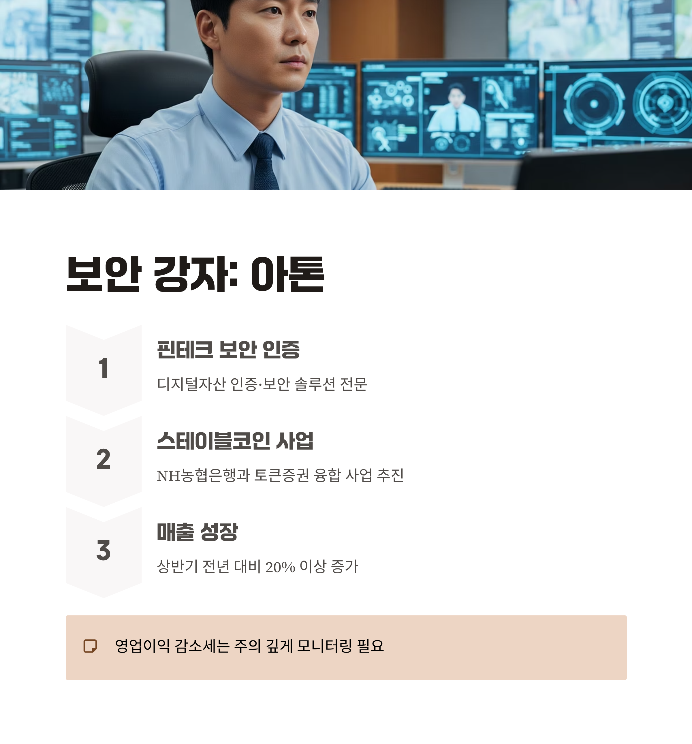아톤 (158430) 핀테크 보안 기술 기반, 디지털자산 인증·보안 서비스 확장 중 ₩8,000 ~ ₩15,000