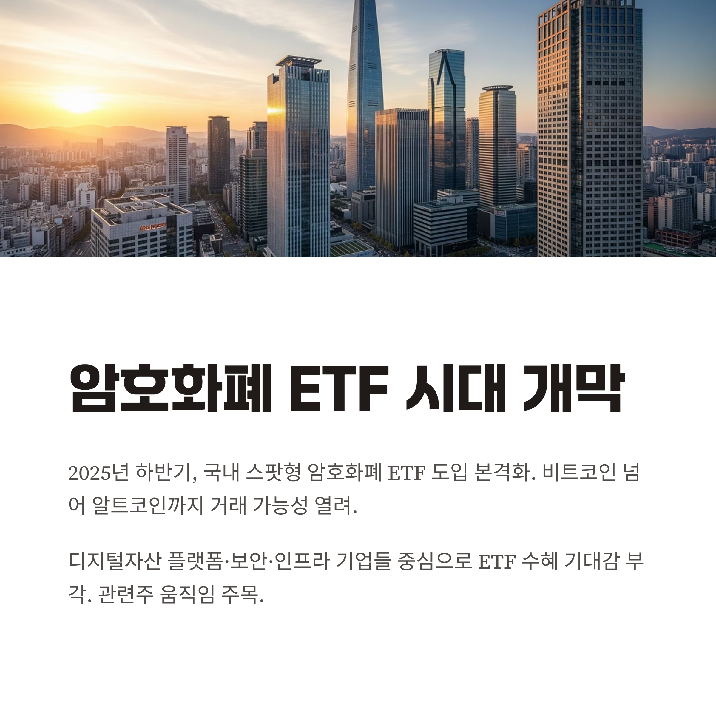 2025년 하반기, 드디어 국내에서도 스팟형 암호화폐 ETF 도입 움직임이 본격화되고 있습니다. 비트코인을 넘어 알트코인까지 거래 가능성이 열린 지금, 시장은 관련 기업들의 수혜 가능성에 주목하고 있죠.