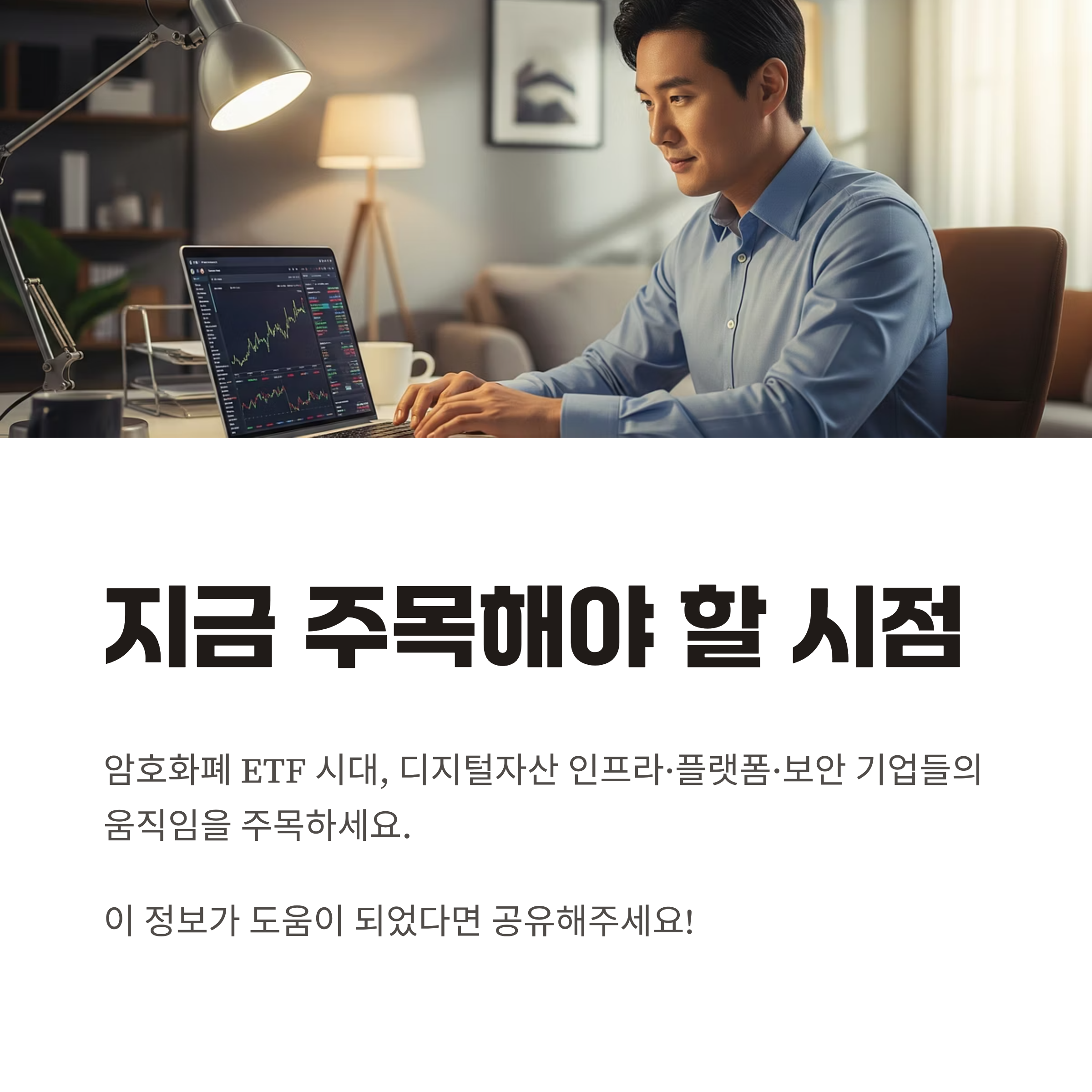 특히, 디지털자산 기반 플랫폼·보안·인프라 구축 역량이 있는 기업들을 중심으로 ETF 수혜 기대감이 부각되며 관련주들이 움직이고 있습니다. 이 글에서는 수혜가 예상되는 주요 관련주 5곳과 기업별 투자 포인트, 참고용 목표주가를 정리해드립니다.