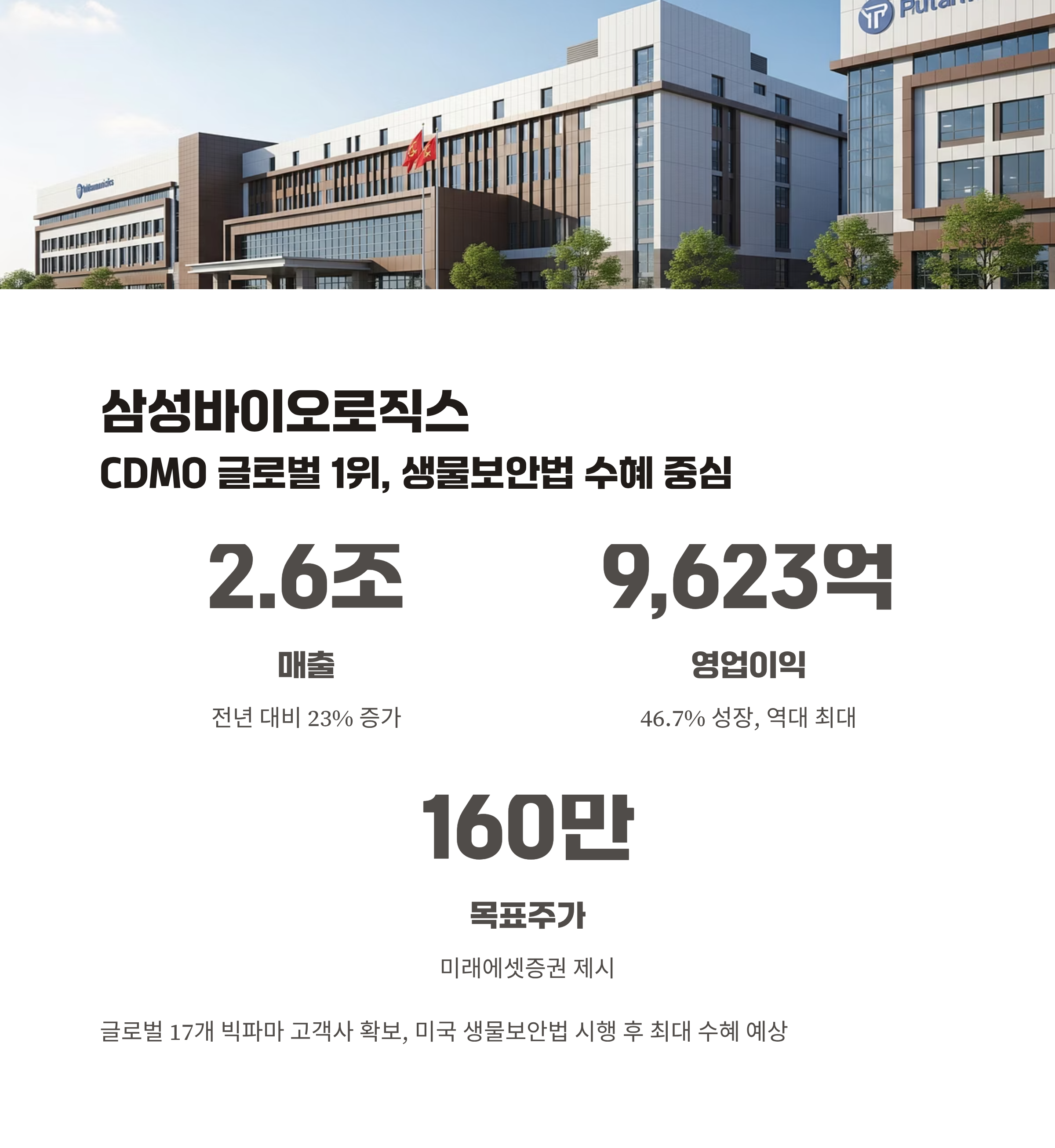 삼성바이오로직스는 단기 테마를 넘어, 미국 생물보안법 시행 이후 가장 큰 구조적 수혜기업으로 평가받습니다.