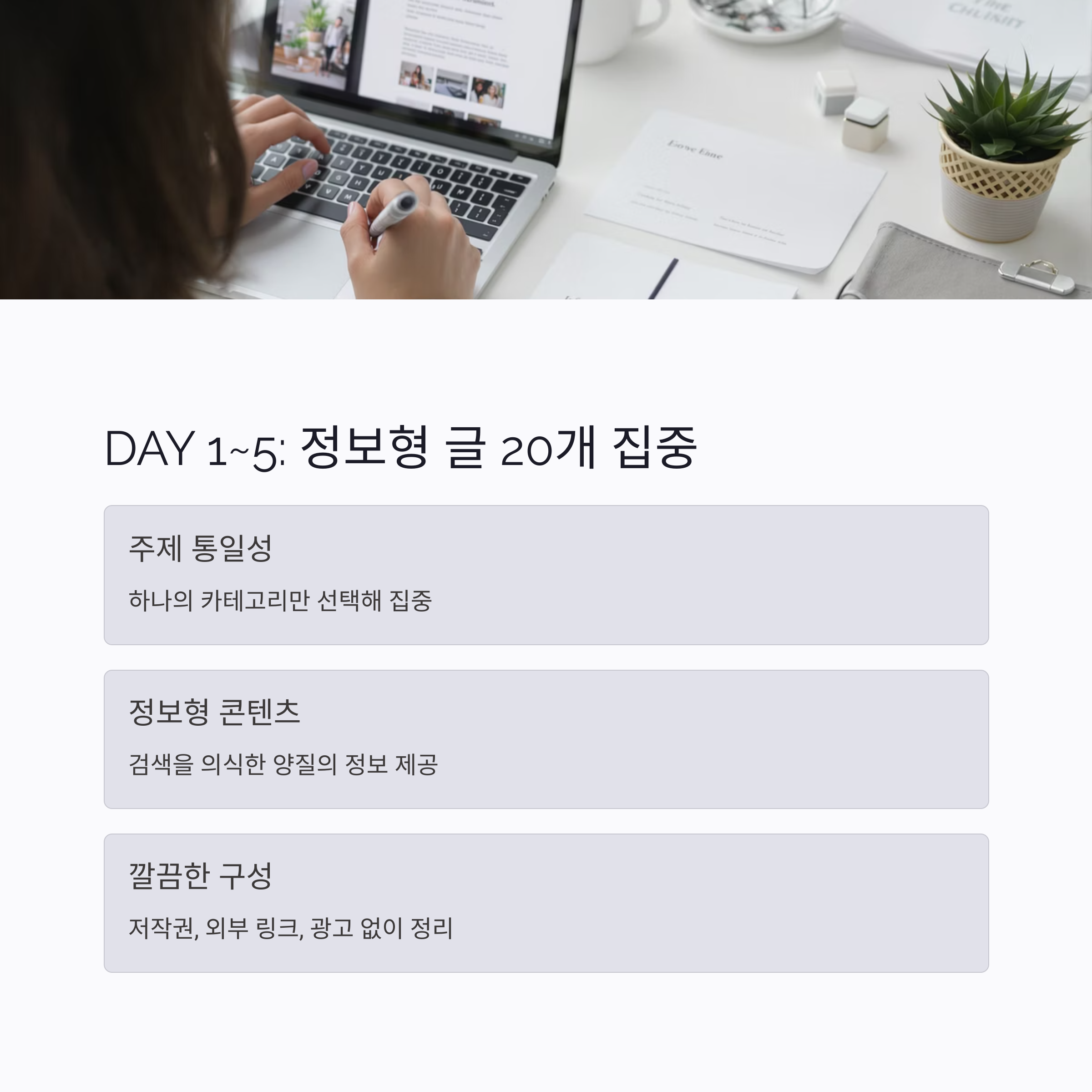 DAY 1~5: 정보형 글 20개, 카테고리 하나로 집중