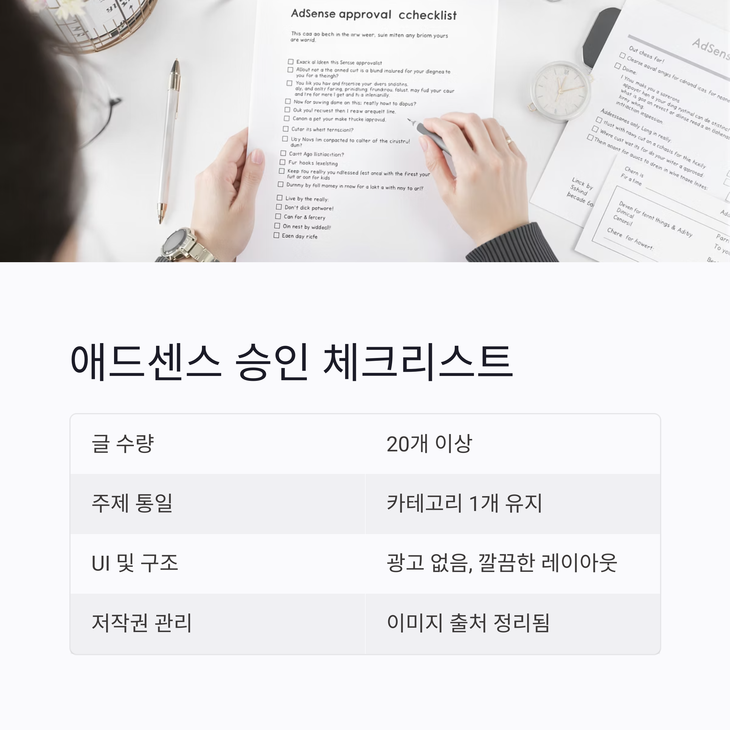 애드센스 신청 전 체크리스트를 짧게 정리하면 다음과 같습니다