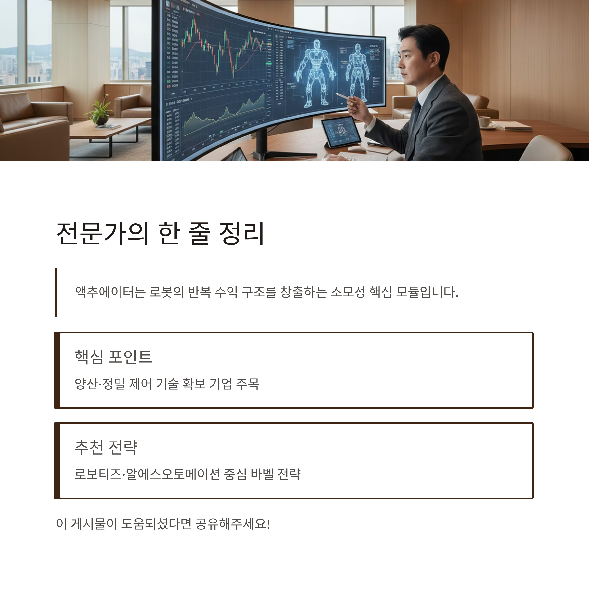 따라서 단순 납품 기업보다, 모터·감속기·제어기·센서가 통합된 정밀 액추에이터 모듈을 직접 생산하는 기업에 프리미엄이 붙는 구간입니다.