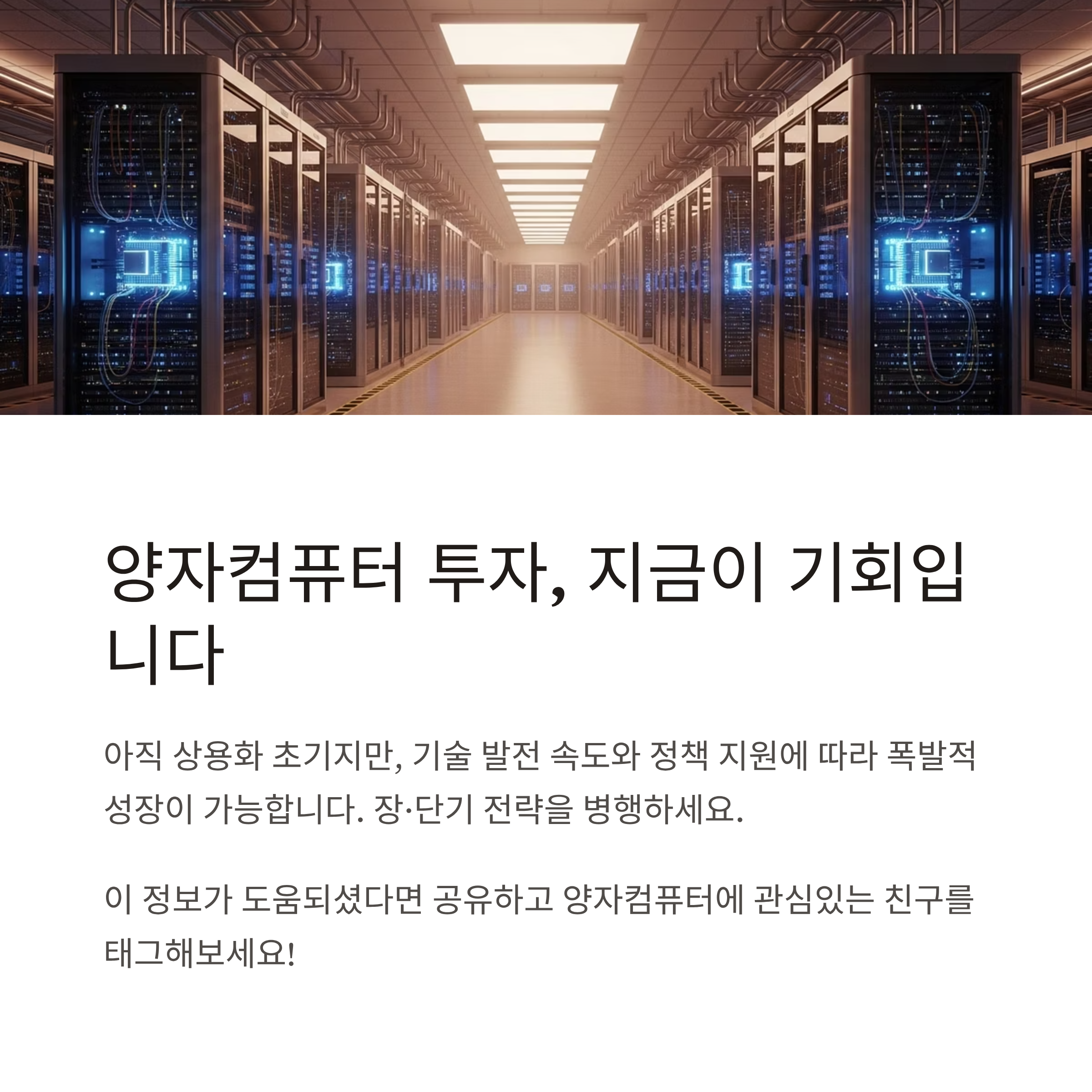 양자컴퓨터는 아직 상용화 초기지만, 기술 발전 속도와 정책 지원에 따라 폭발적 성장이 가능하므로 장·단기 전략을 병행하는 것이 바람직합니다.