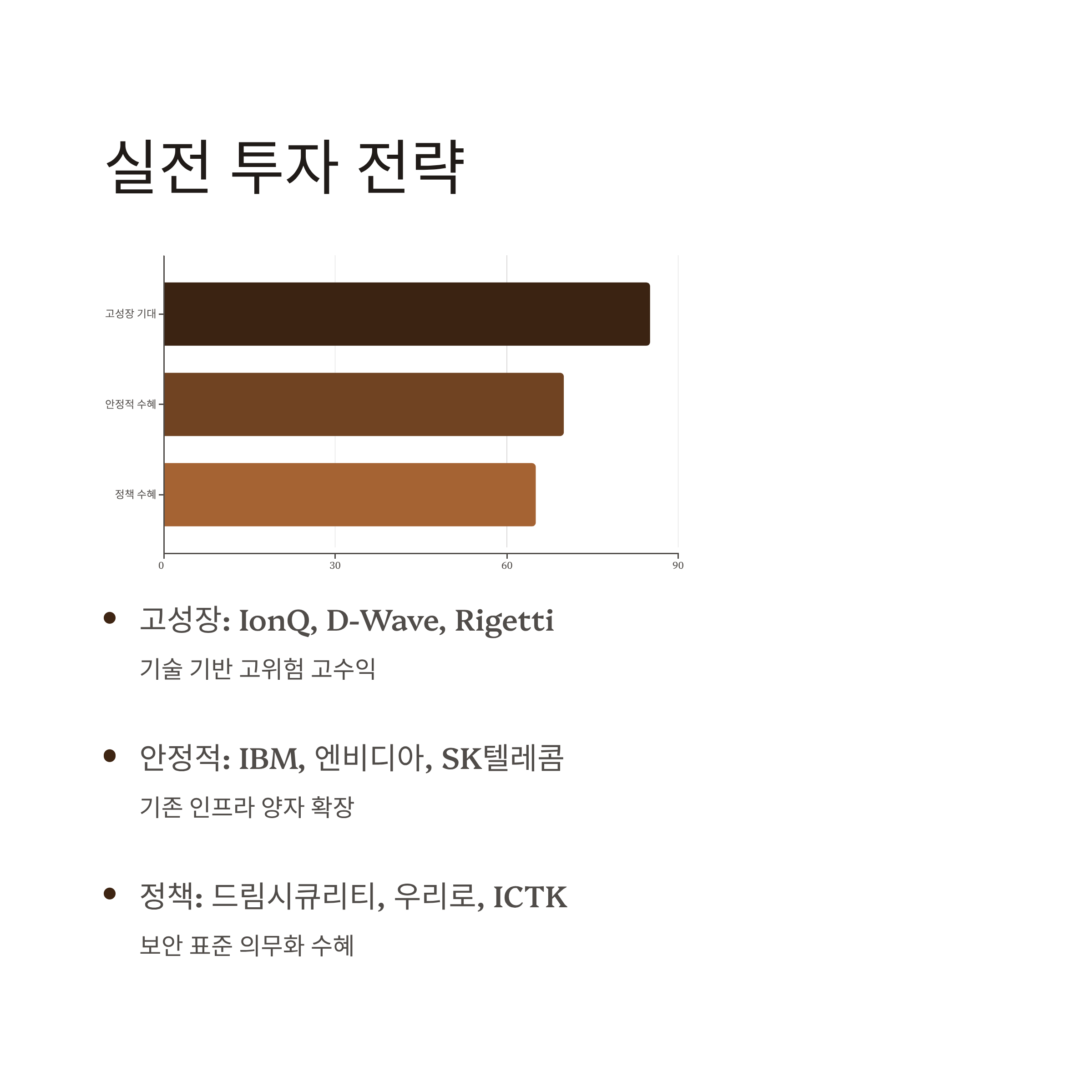 | 안정적 수혜 | IBM, 엔비디아, SK텔레콤 | 기존 인프라 + 양자 확장 전략 |