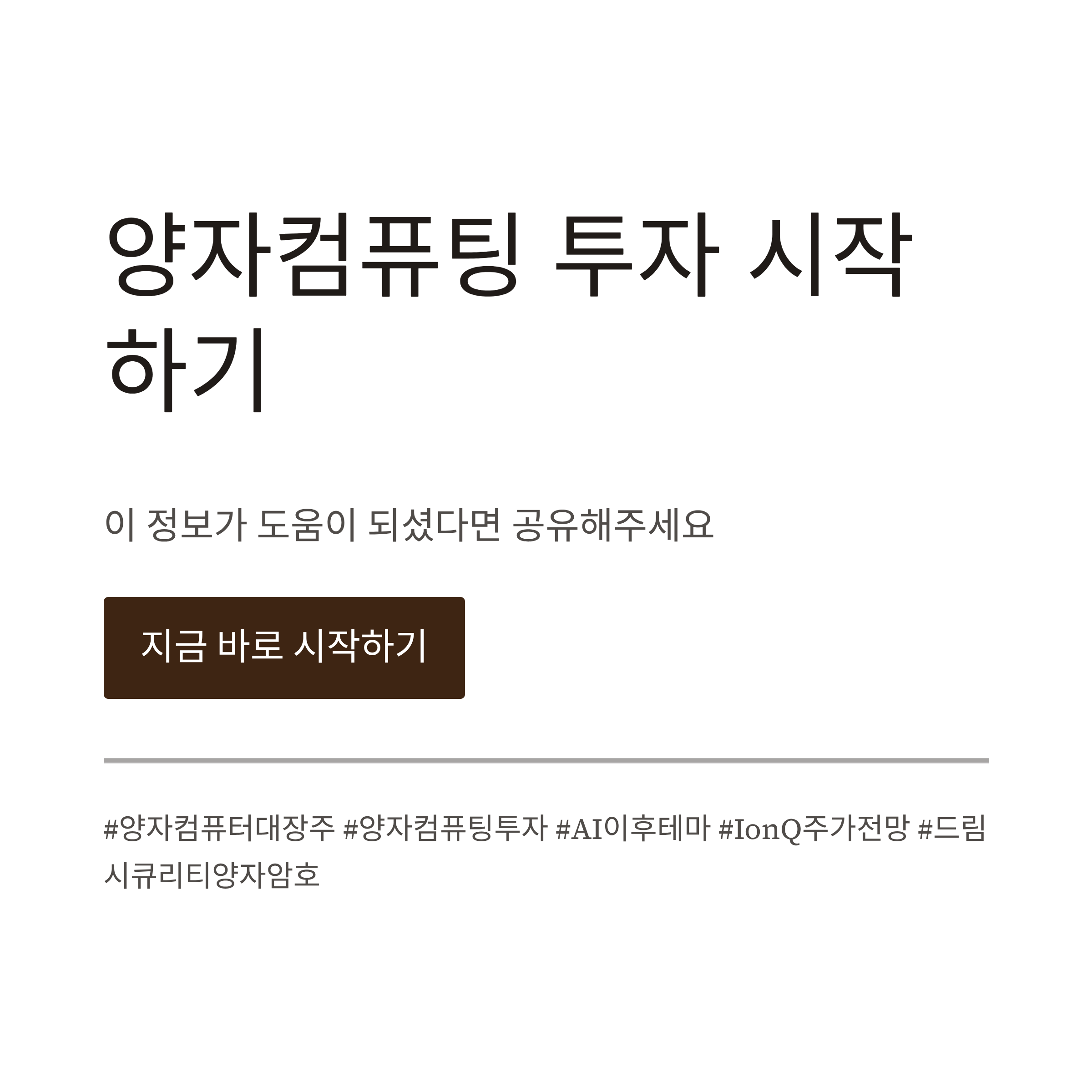 지금은 ‘시작점’입니다. 10년 뒤 양자컴퓨터가 실제 산업을 바꿔놓는 시점이 오면, 그땐 이미 많은 수익이 반영되어 있을 겁니다.