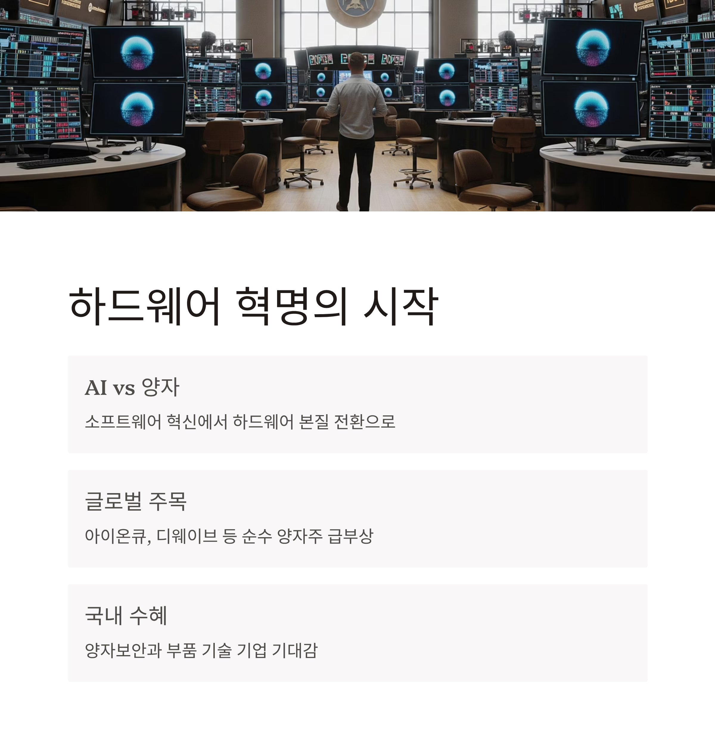 ‘하드웨어는 미국, 보안은 한국’이라는 양자 테마의 이중 구조가 형성되고 있습니다.