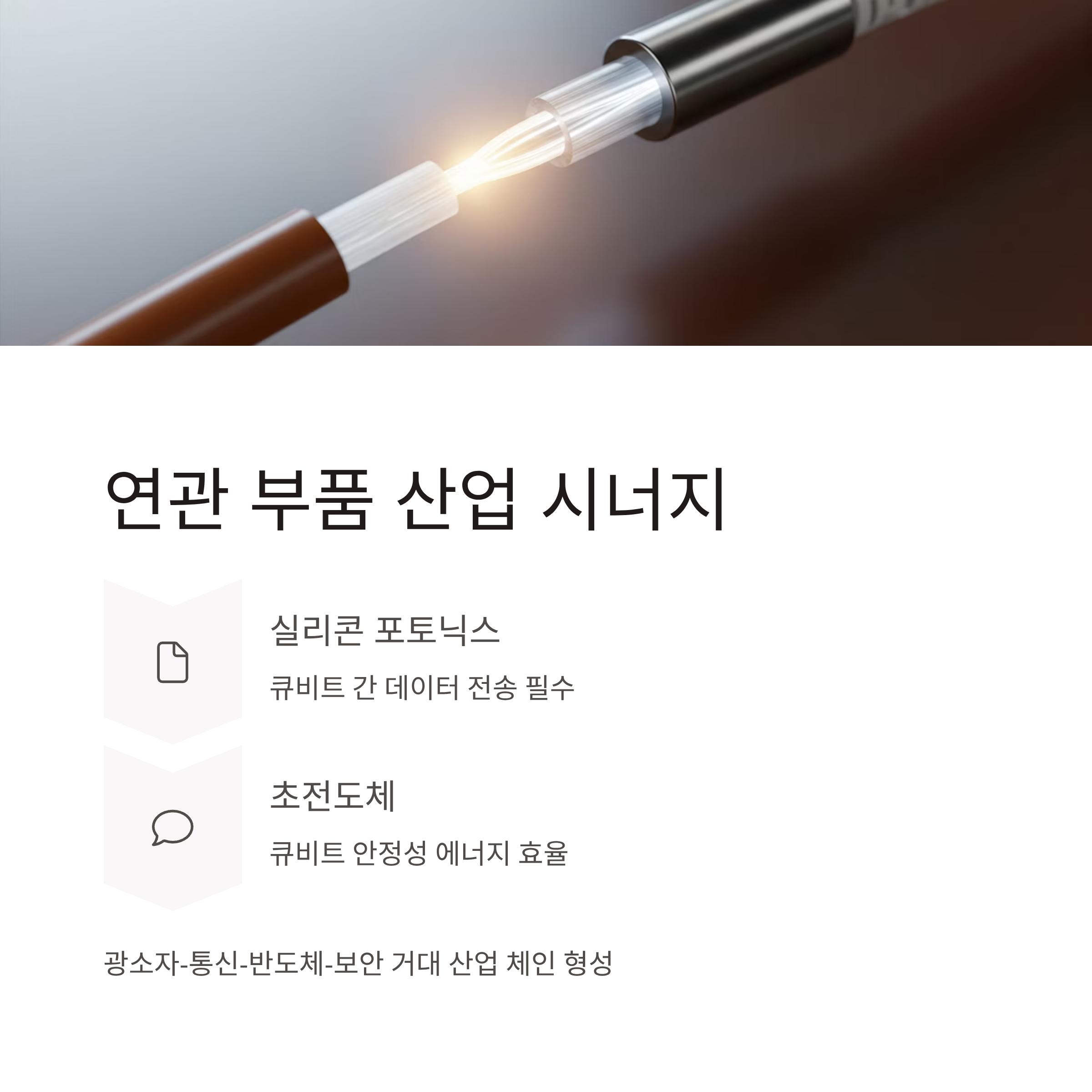 양자컴퓨터의 부상은 연관 부품 산업에도 기회를 줍니다. 실리콘 포토닉스(광반도체)는 양자컴퓨터 내 큐비트 간 데이터 전송을 위해 필수적이며, 초전도체는 큐비트 안정성과 에너지 효율을 높이는 열쇠입니다.