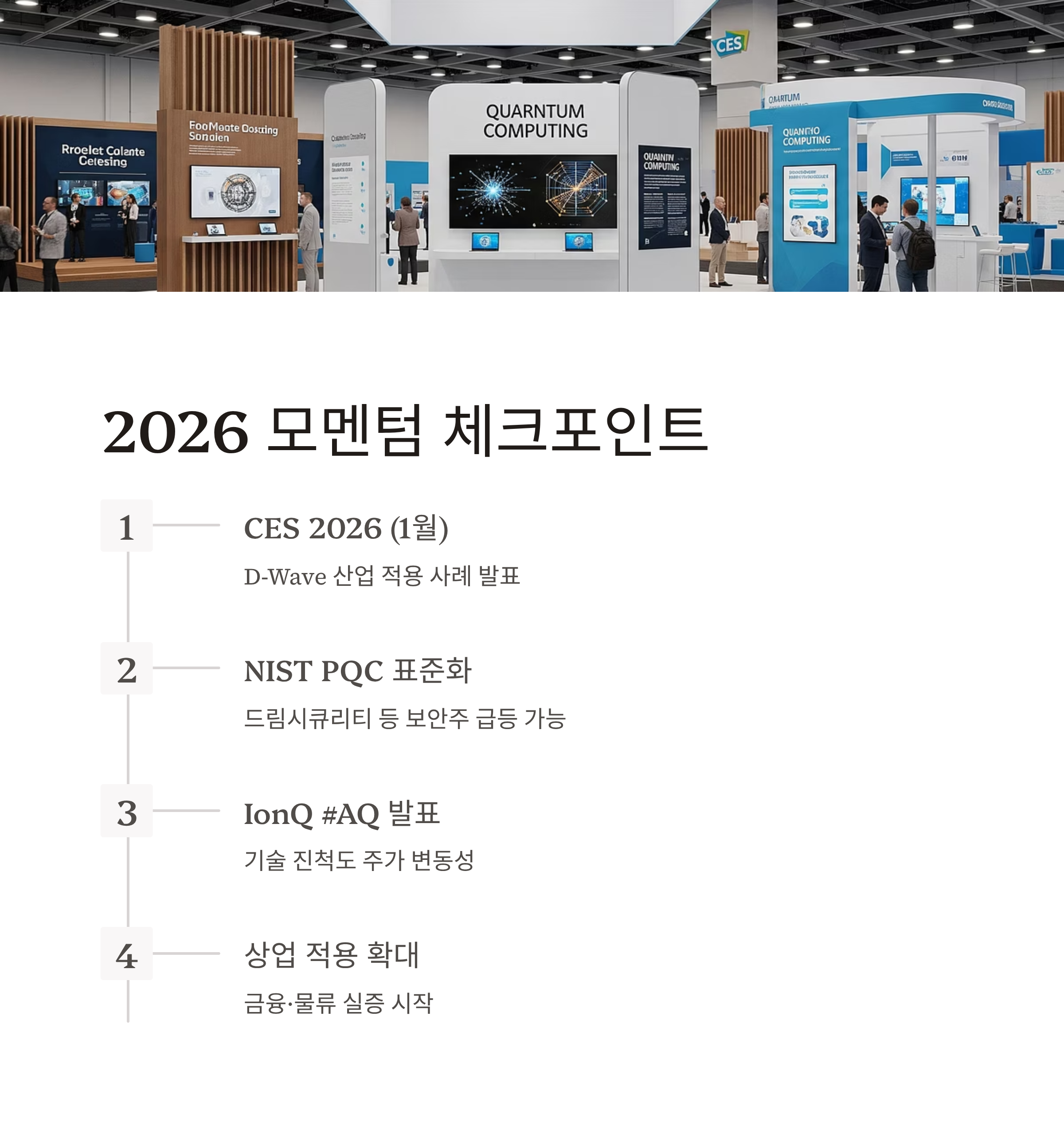 | CES 2026 (1월) | D-Wave 중심으로 산업 적용 사례 발표 예상 |