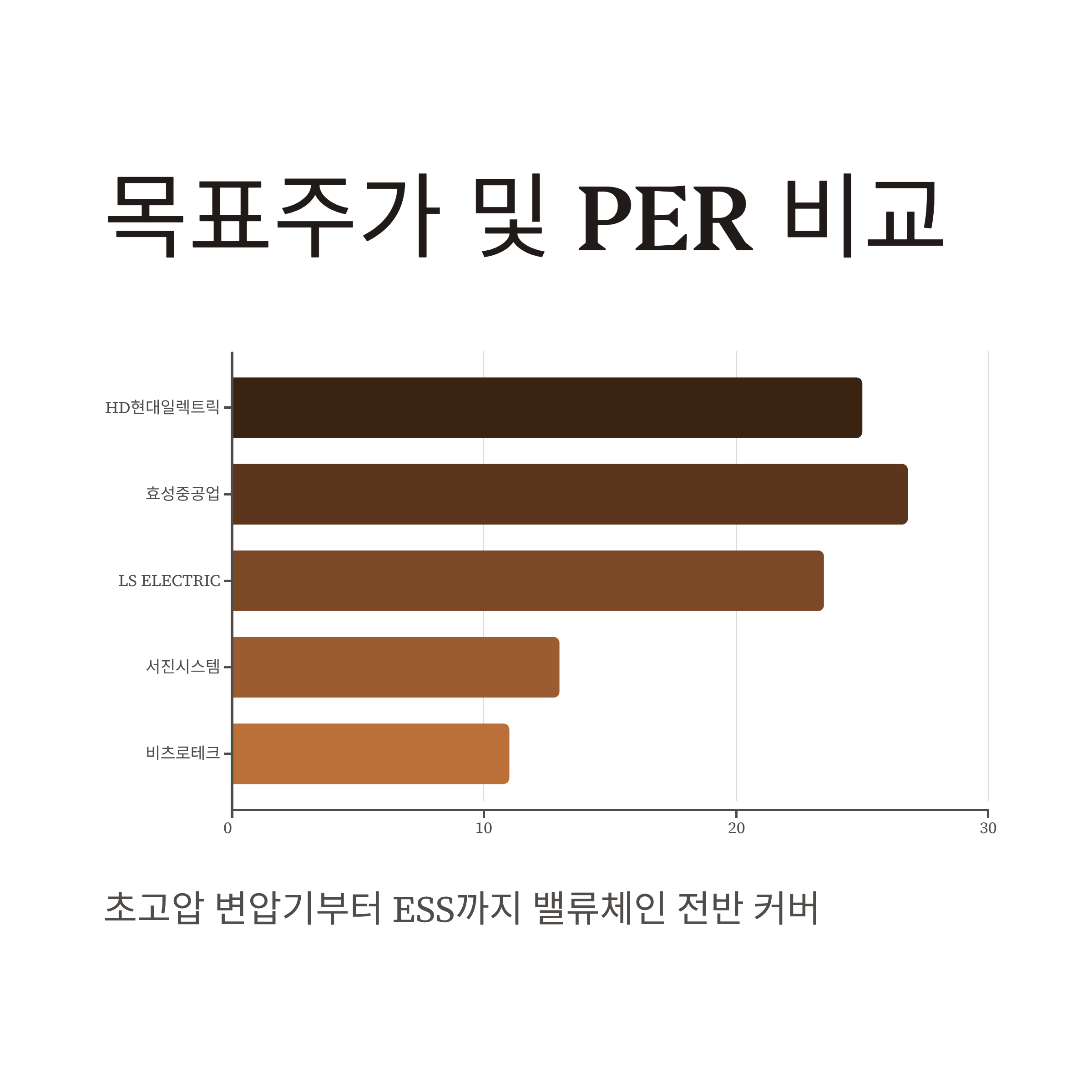 주요 전력 인프라 기업 목표주가 및 PER 비교