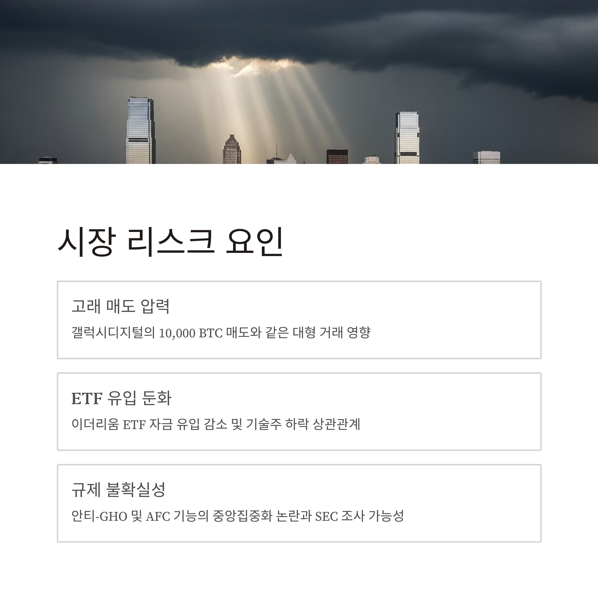 시장 리스크 요인: 규제, 고래 매도, ETF 유입 둔화