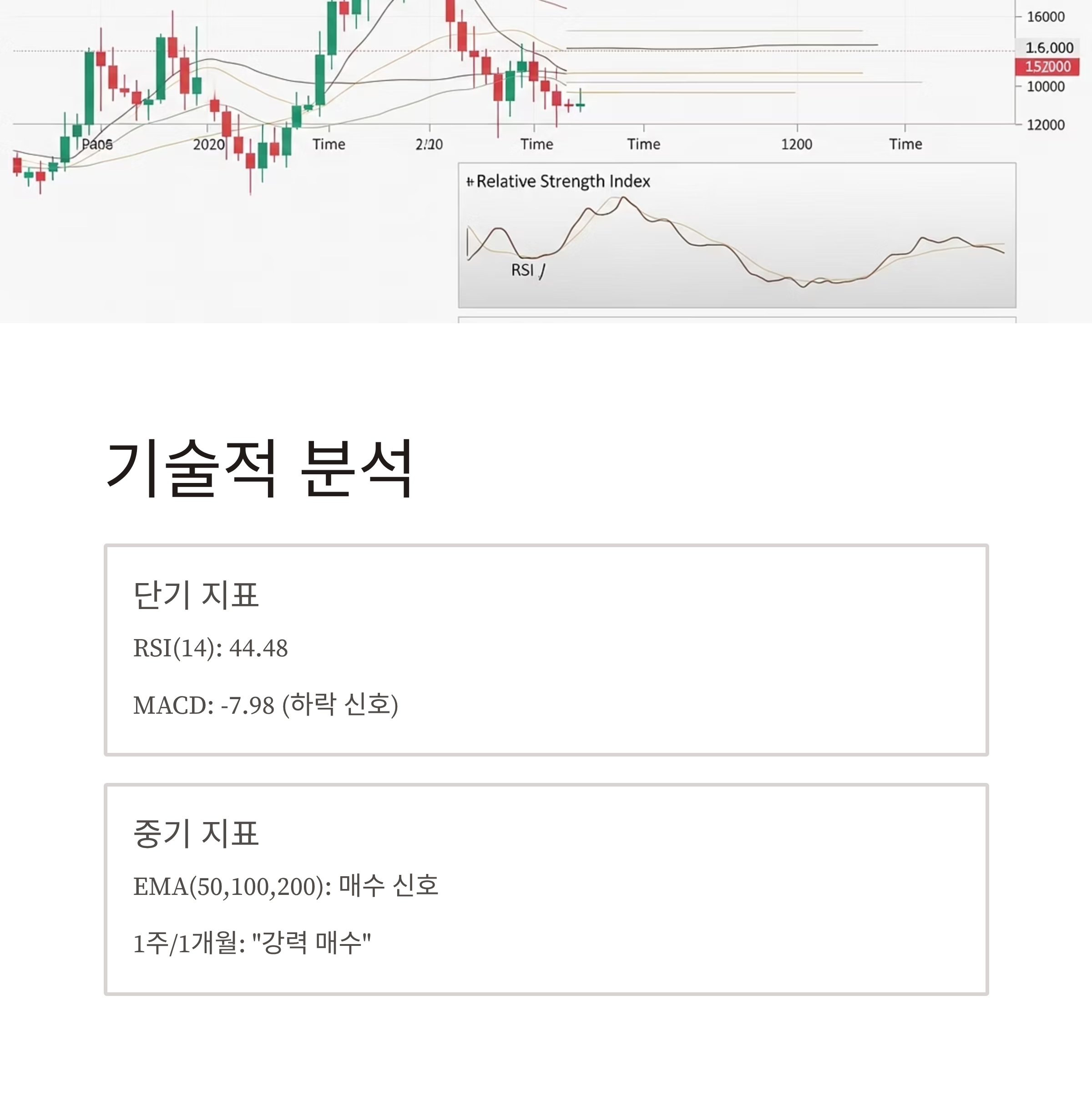 | 중기 지표 | 중립 | 강세 (EMA50 이상 대부분 매수 신호) |