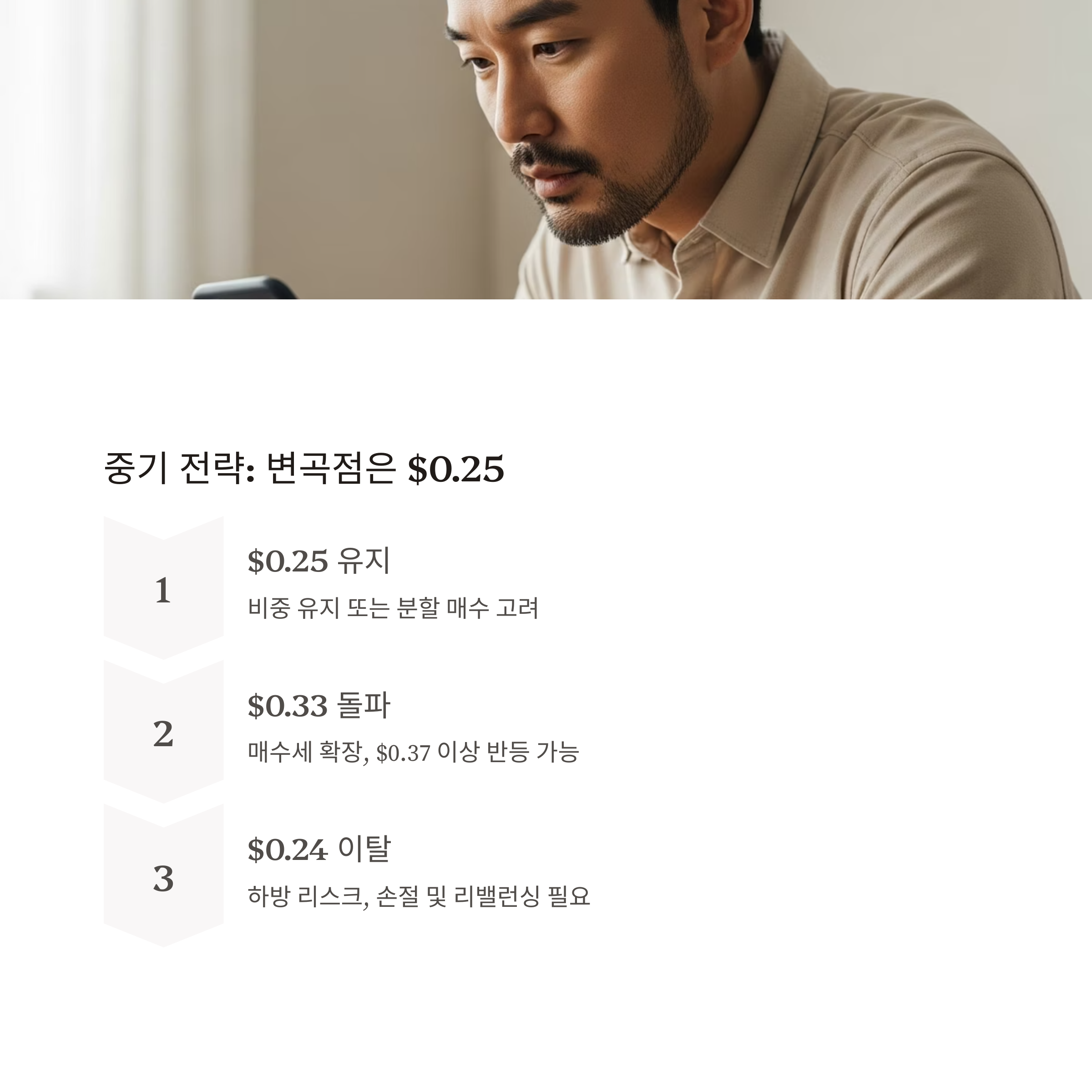 | $0.25 유지 | 비중 유지 또는 분할 매수 고려 |