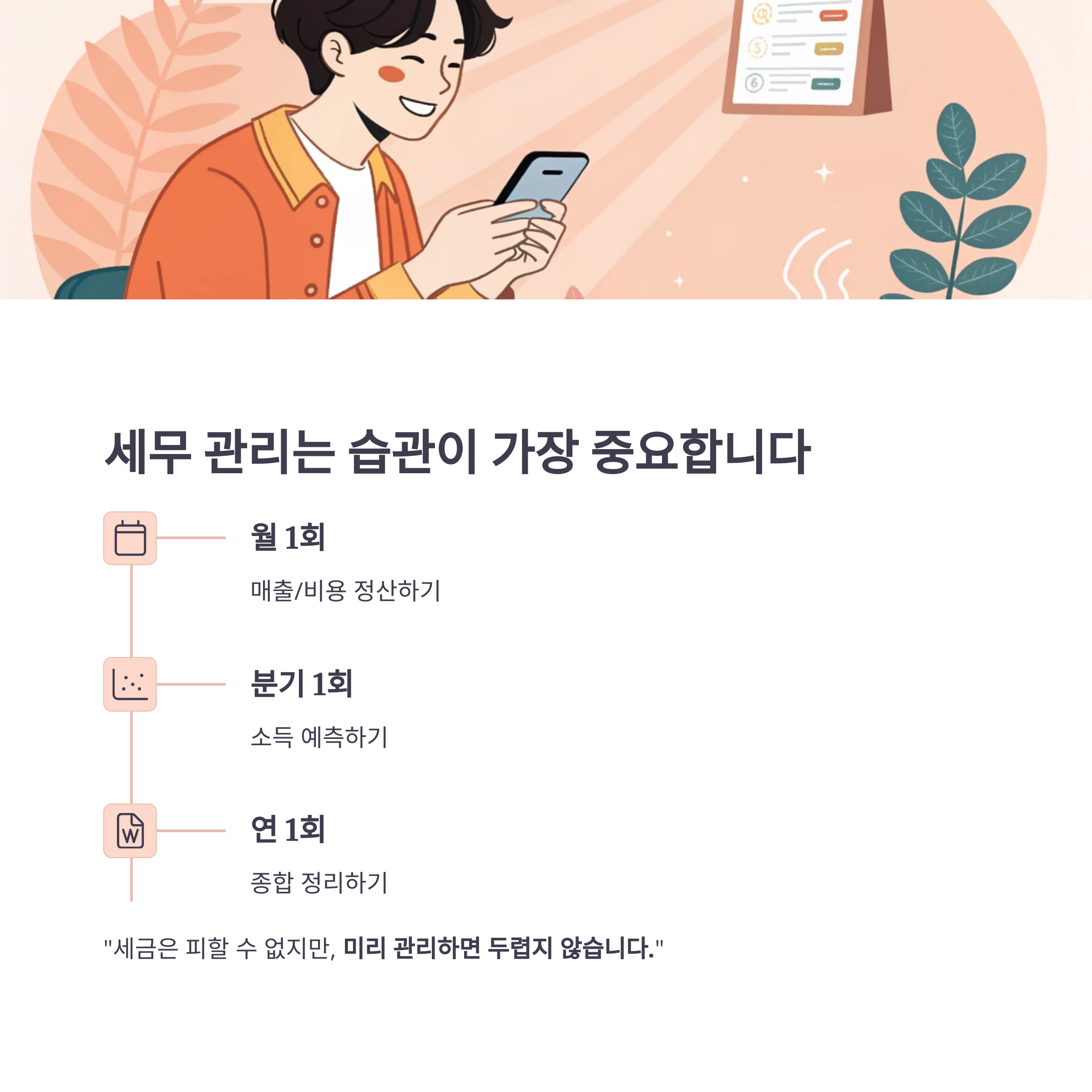 "세금은 피할 수 없지만, 미리 관리하면 두렵지 않습니다."