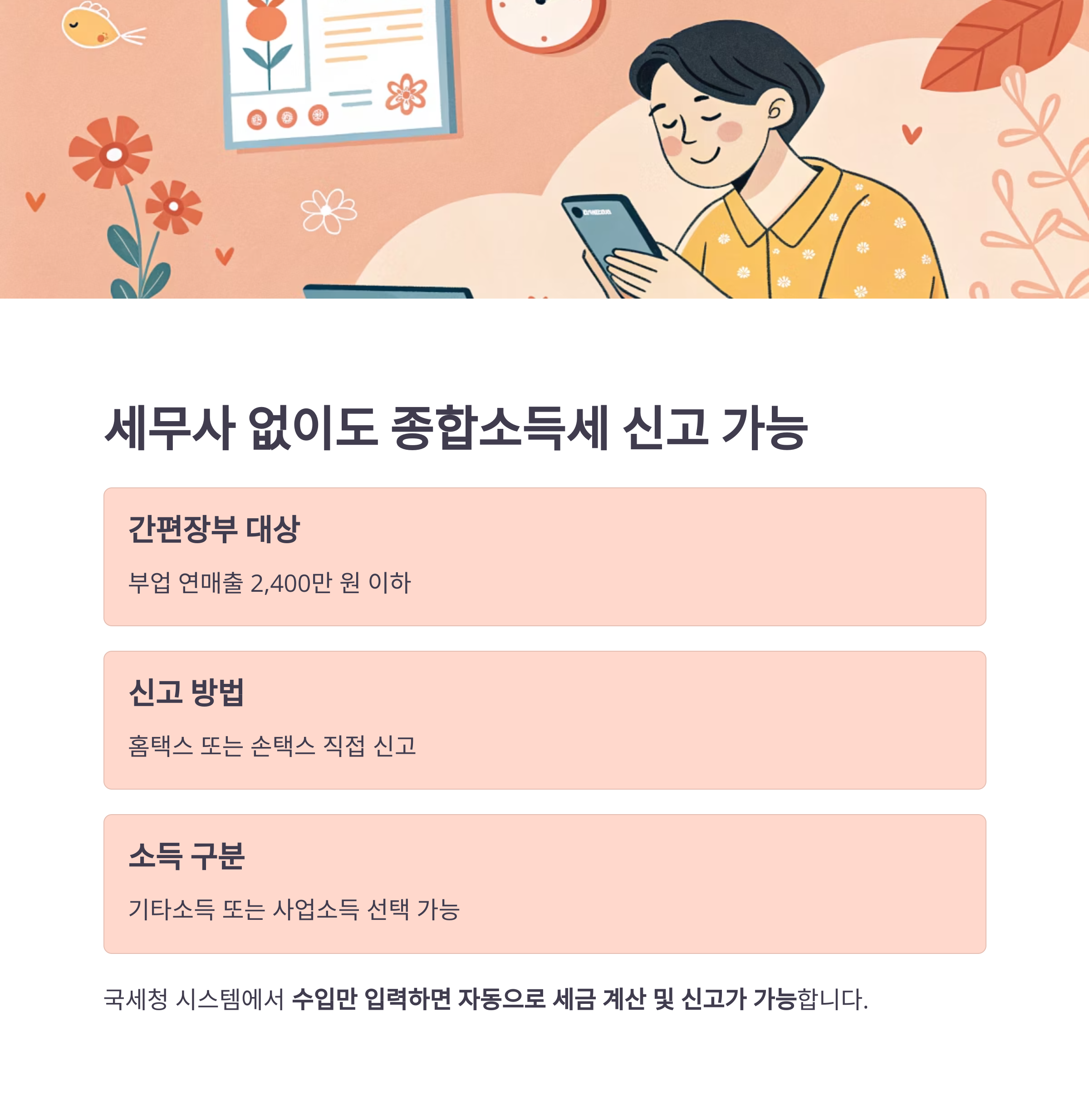 | 종합소득세 대상 | 홈택스 직접 신고 가능 |