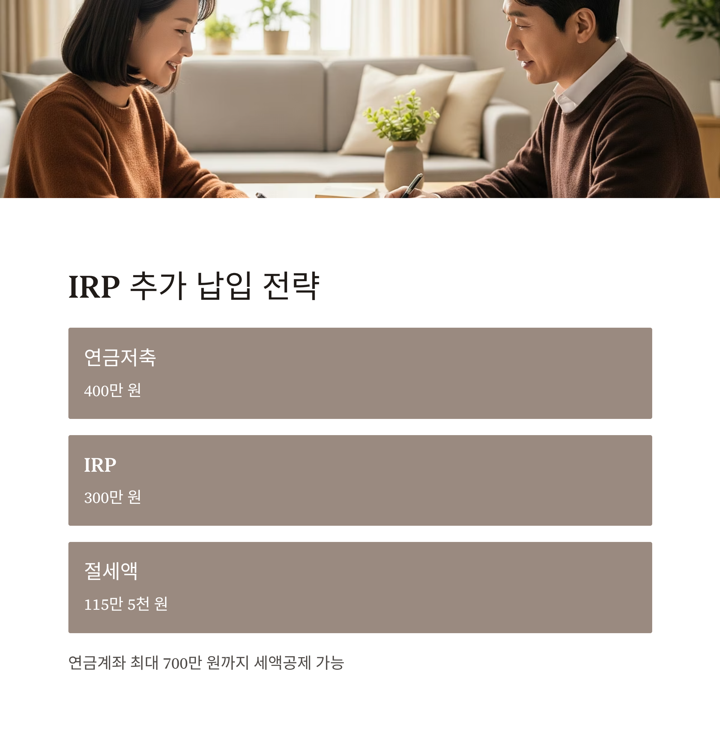 연금저축 400만 원 + IRP 300만 원 → 세액공제 최대 115만 5천 원 가능