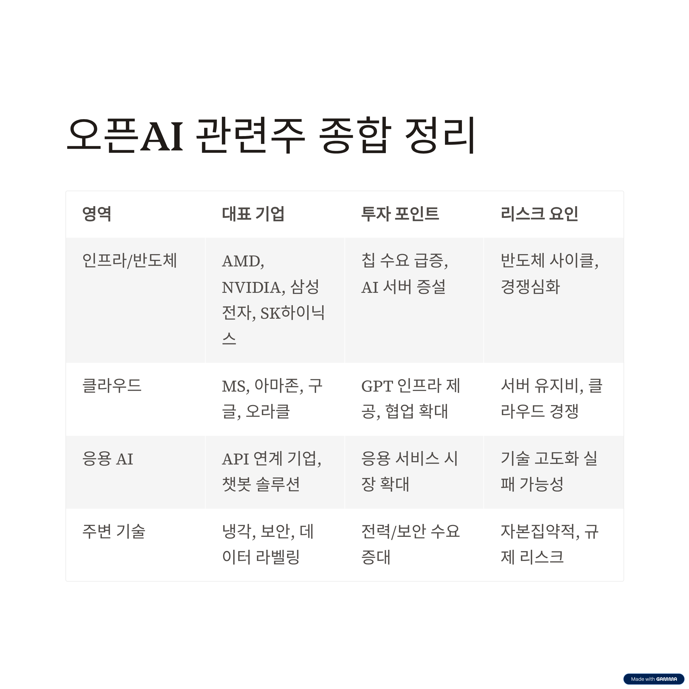 마크다운 표로 보는 오픈AI 관련주 종합 정리