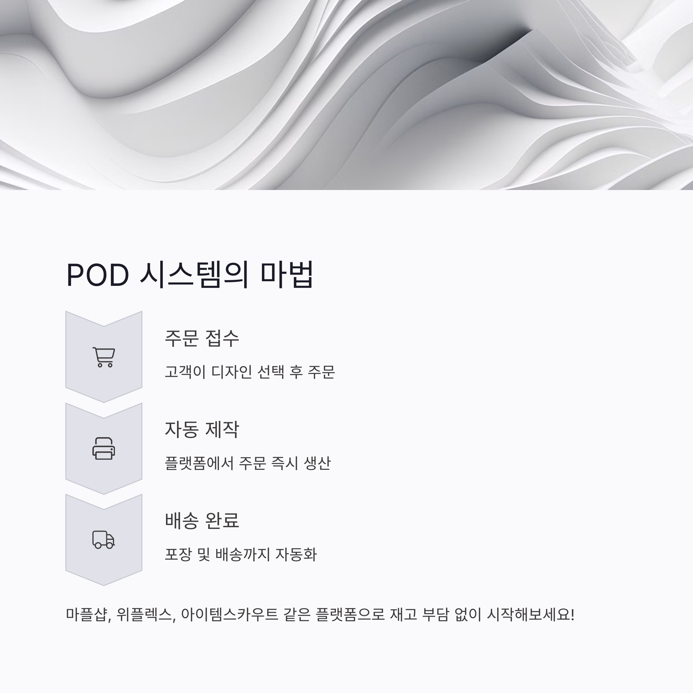 | POD 시스템이란? | 주문이 들어온 후 자동으로 제작·배송되는 인쇄 주문 시스템 |