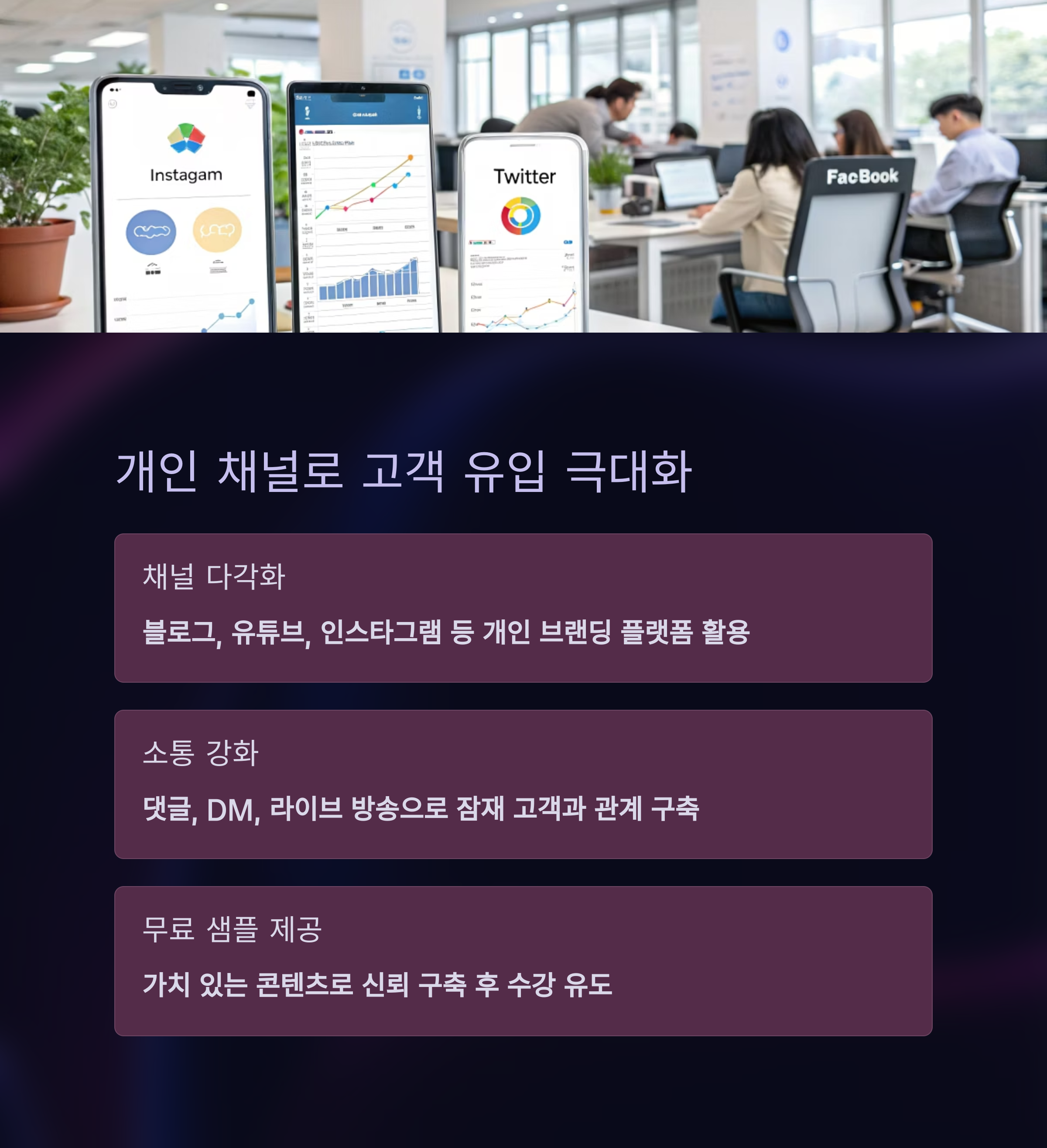 | 니즈 기반 문제 해결 중심 콘텐츠 설계 | 광고보다 구독 기반 콘텐츠 확산이 효율적 | 피드백을 반영해 강의 품질 지속 향상 |