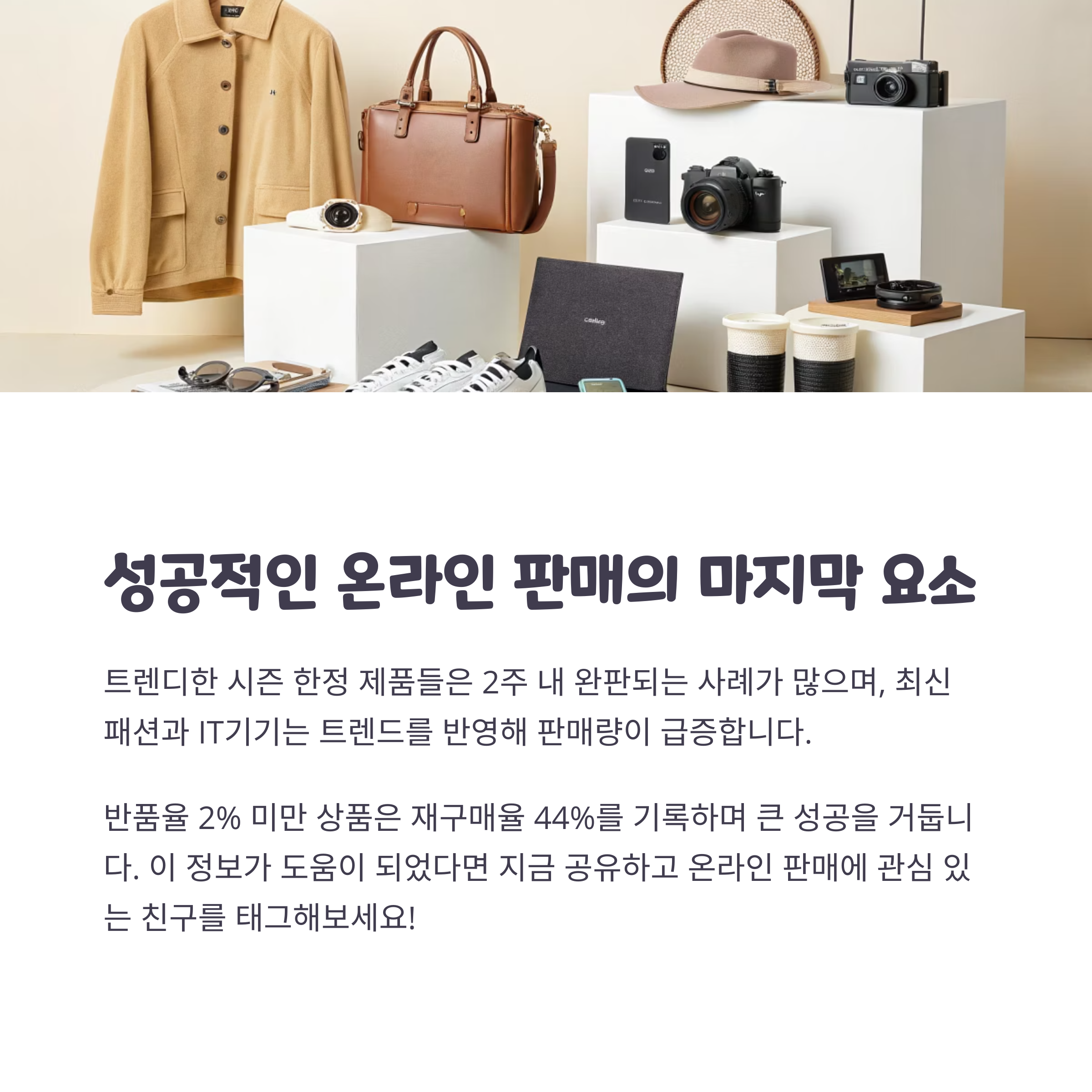 여러분이 판매하는 상품은 어떤 특징이 있는지, 그리고 어떻게 판매를 성공적으로 이끌어가고 있는지 댓글로 알려주세요. 서로의 경험을 공유하여 더 많은 성공을 이뤄보세요!