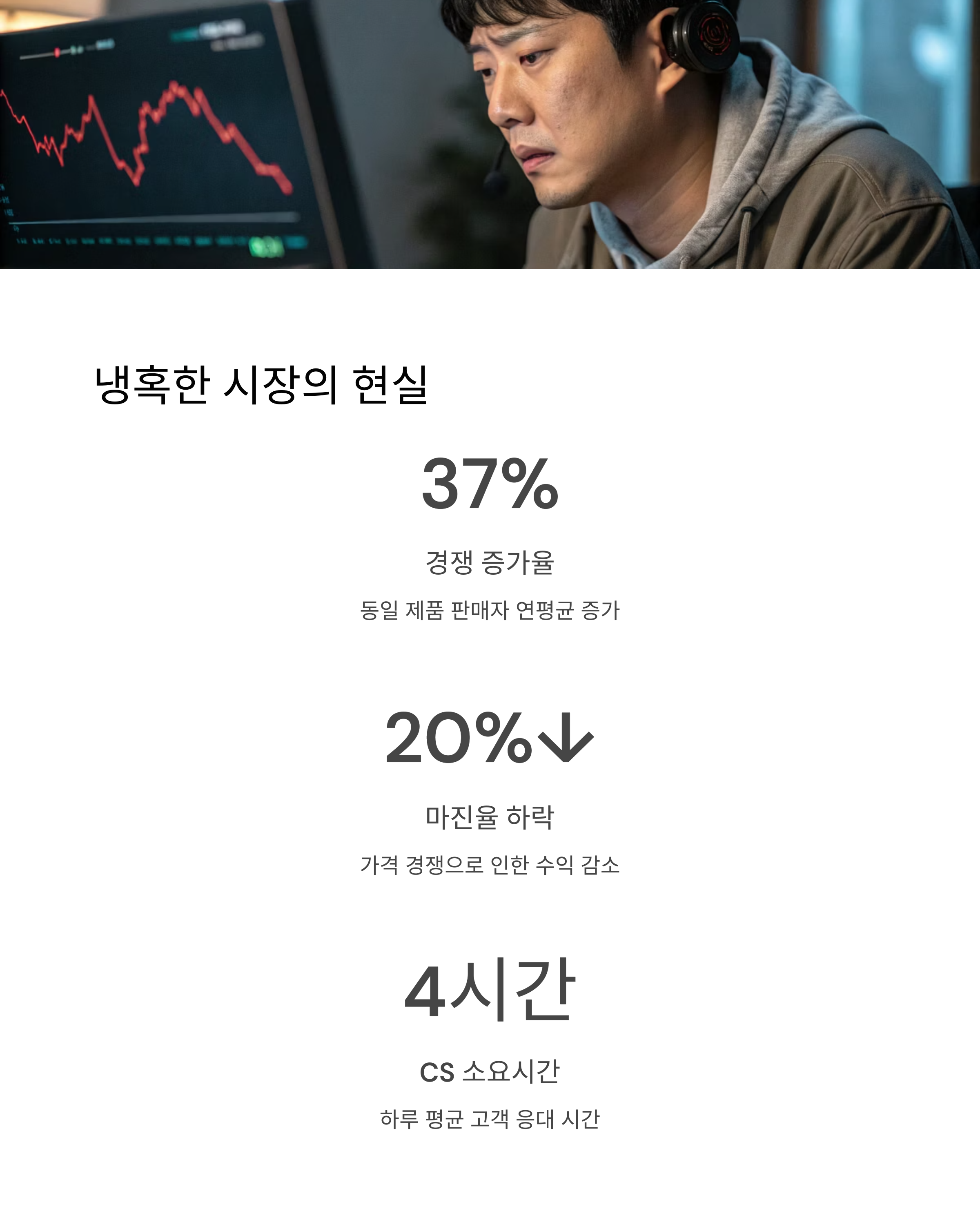 그래서 저는 해외구매대행으로 눈을 돌렸습니다. 고수익의 가능성과 틈새시장 공략이 매력적이었기 때문이죠. 하지만 고객과의 소통, 통관 지연, 환불 처리 등 시간과 에너지를 요구하는 요소들이 생각보다 많았습니다. 그러다 쿠팡 로켓그로스를 알게 되었고, 자동화와 빠른 배송 시스템 덕분에 큰 매출 성장을 경험할 수 있었습니다. 하지만 시간이 흐를수록 경쟁자는 더 많아지고, 수수료와 광고비는 증가했습니다. 마진율은 지속적으로 낮아졌고, 안정적인 수익 창출이 어려워졌습니다. 그 시점부터 '브랜딩'이 절실하다는 생각이 들었습니다.