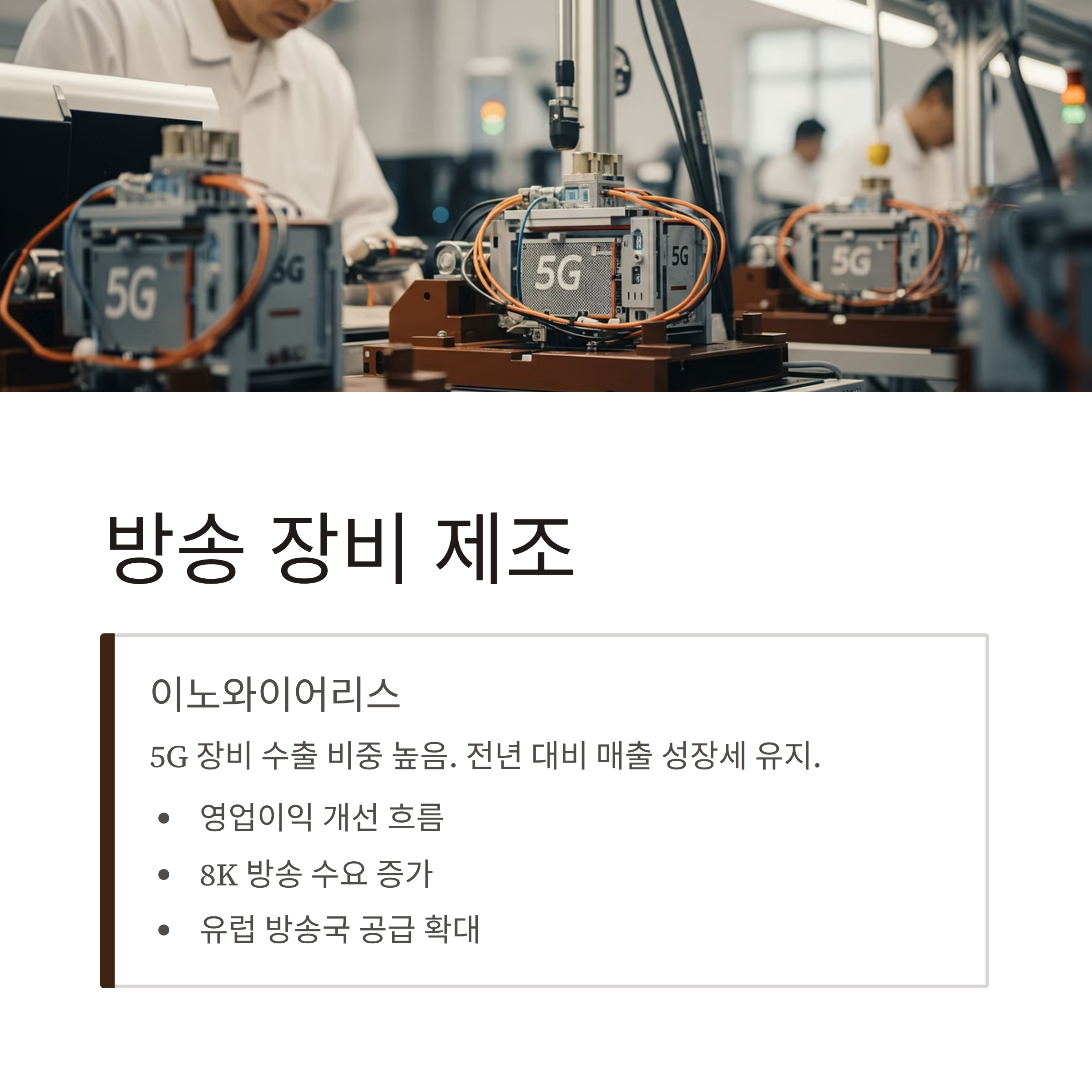 5G 장비 수출 비중이 높은 기업으로, 전년 대비 매출 성장세가 유지되고 있습니다.