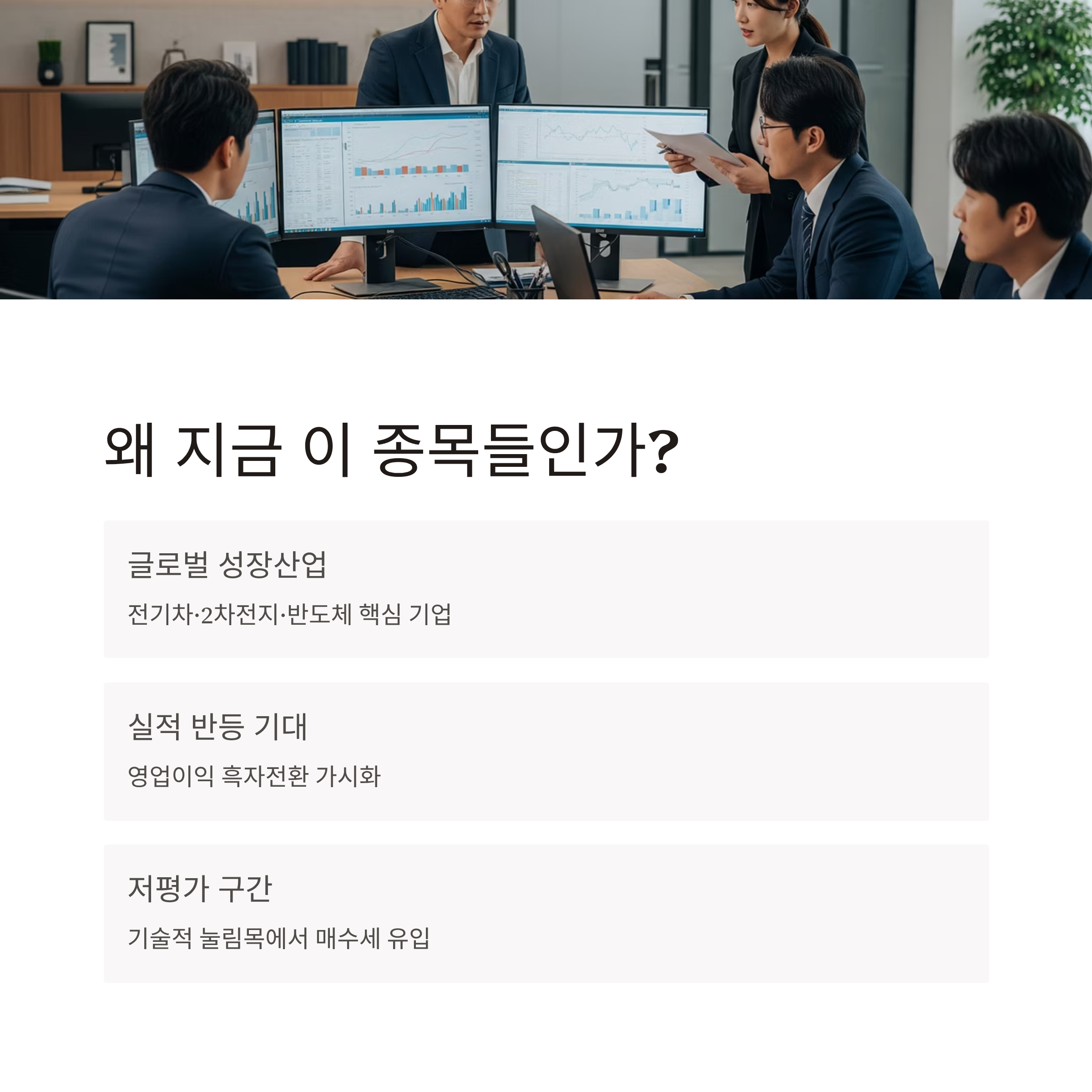 - 실적 반등 기대: 일부 종목은 영업이익 흑자 전환 또는 수익성 개선이 가시화됨
