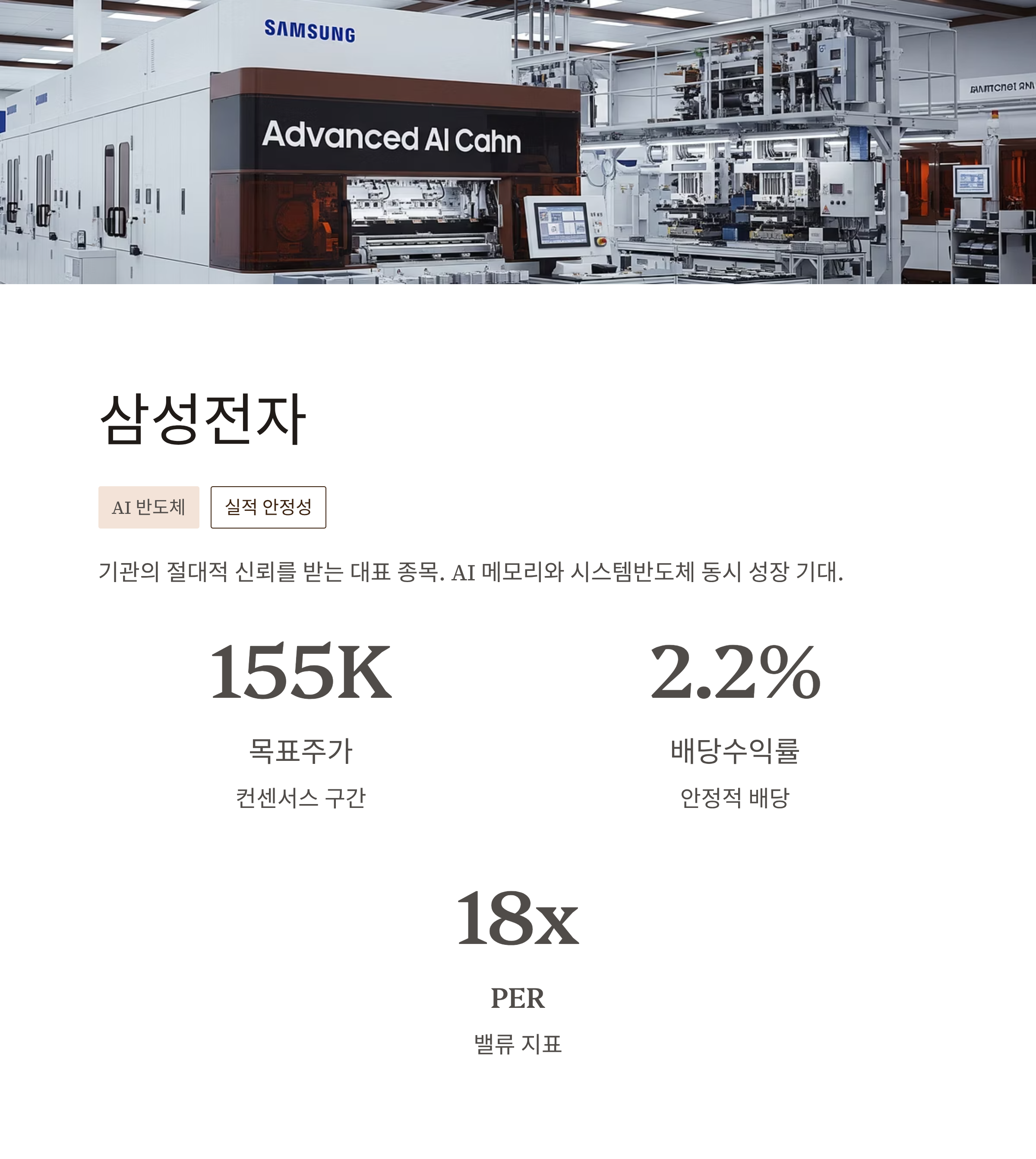 | 삼성전자 | AI·반도체 회복 | 155,000원 | 메모리·시스템반도체 동시 성장 |