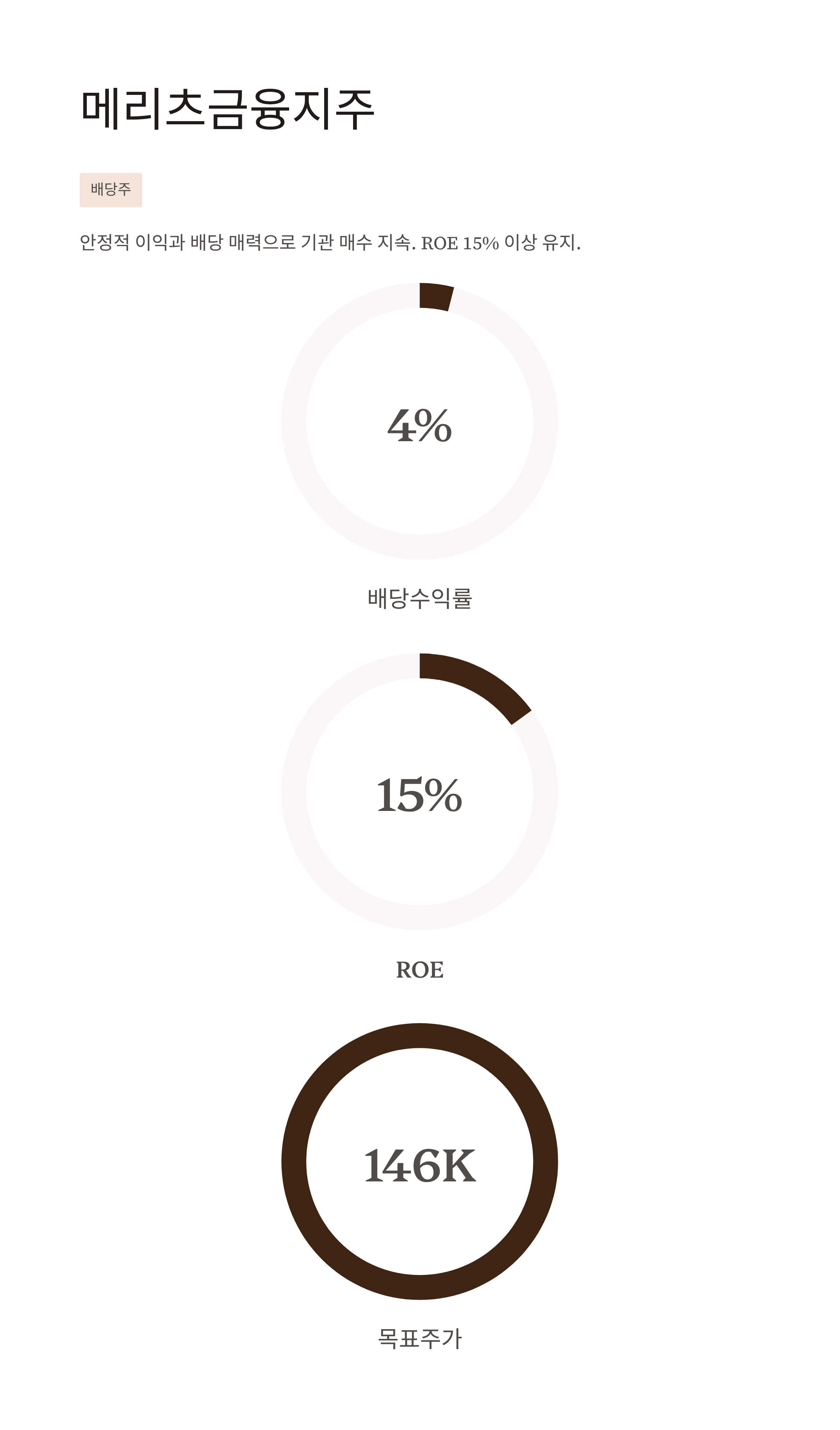 | 메리츠금융지주 | 고배당·ROE 우수 금융지주 | 146 ,000원 | 배당 기반 장기 보유 종목 |