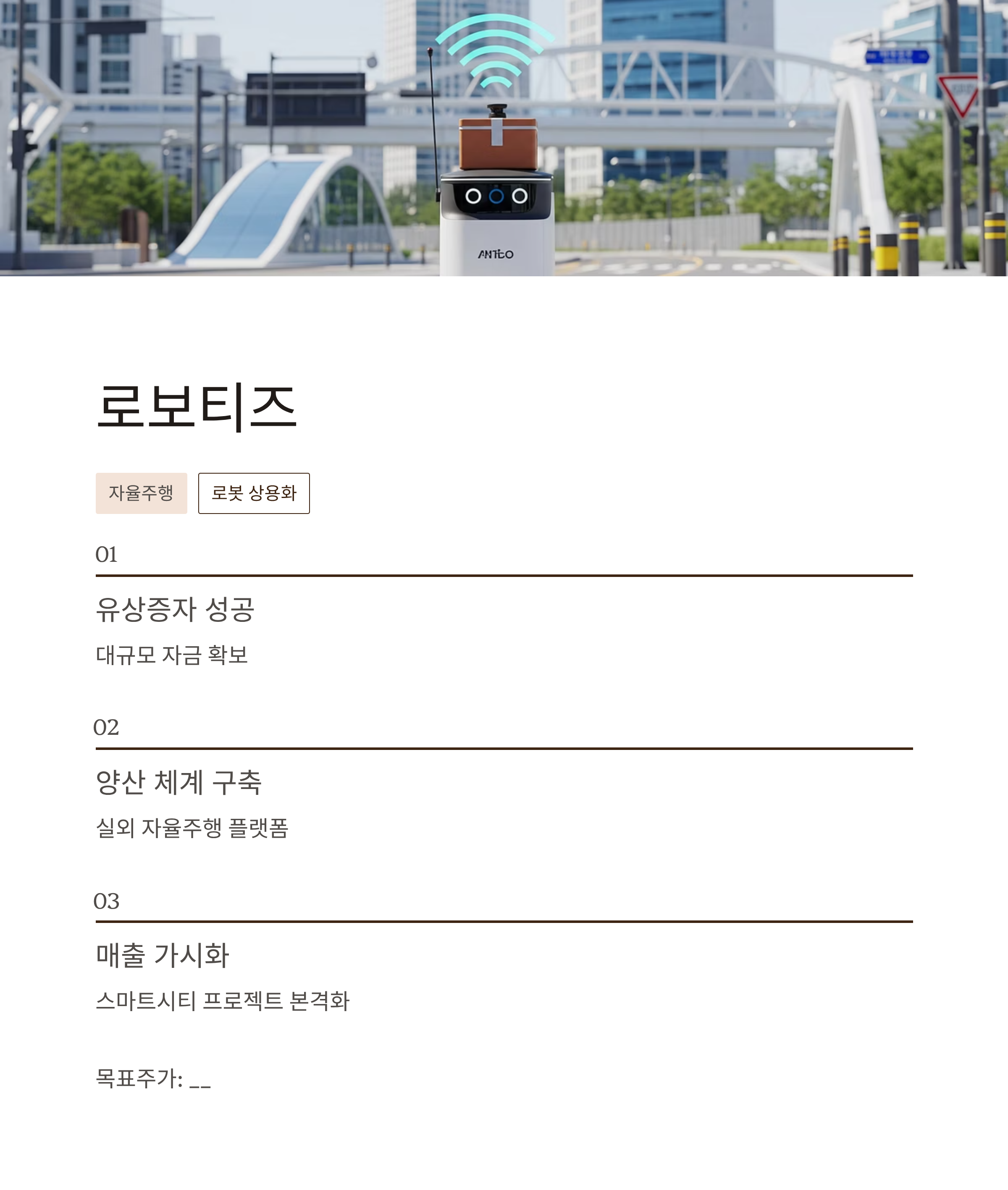 | 로보티즈 | 자율주행 로봇 상용화 | ___ | 실증 사업→매출 전환 구간 진입 |