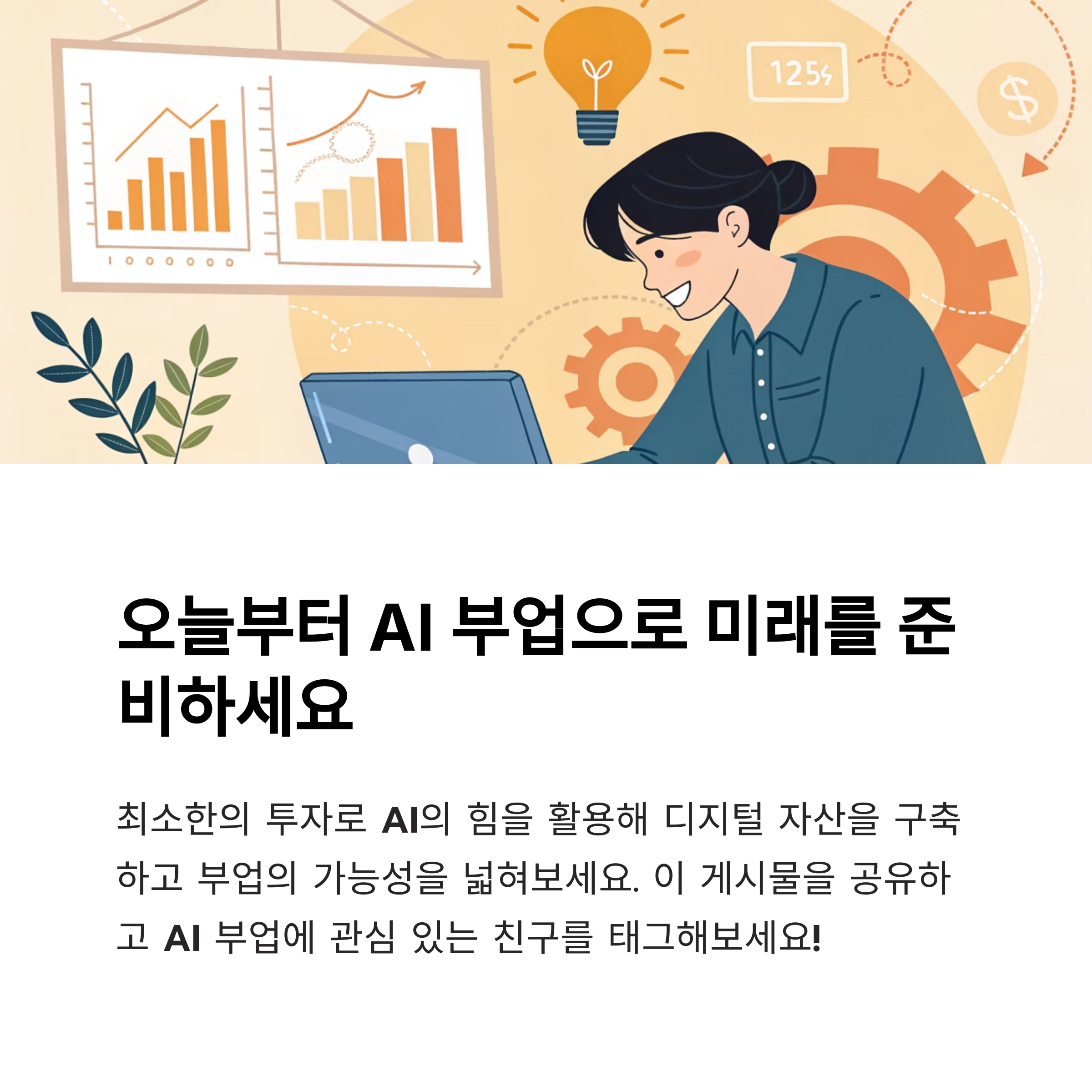 AI를 활용한 부업은 더 이상 기술 전문가의 영역이 아닙니다. 누구나 무료 도구만으로 콘텐츠를 만들고, 자동화로 반복 수익을 설계할 수 있습니다. 지금 바로 챗GPT에 말 걸고, 미드저니를 실행해보세요. 작은 실행이 디지털 자산의 시작입니다.