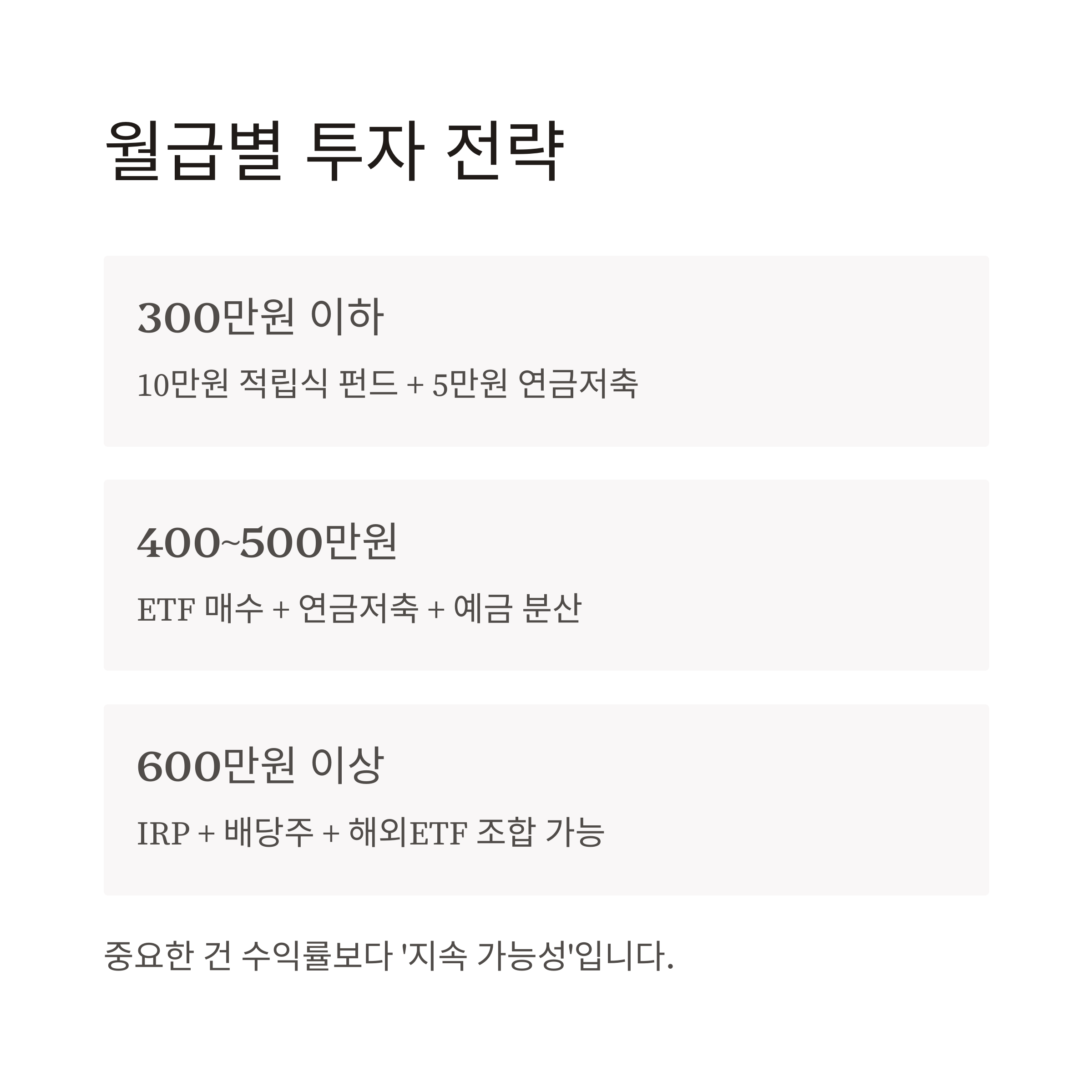 | 400~500만 원 | ETF 매수 + 연금저축 + 예금 분산 |