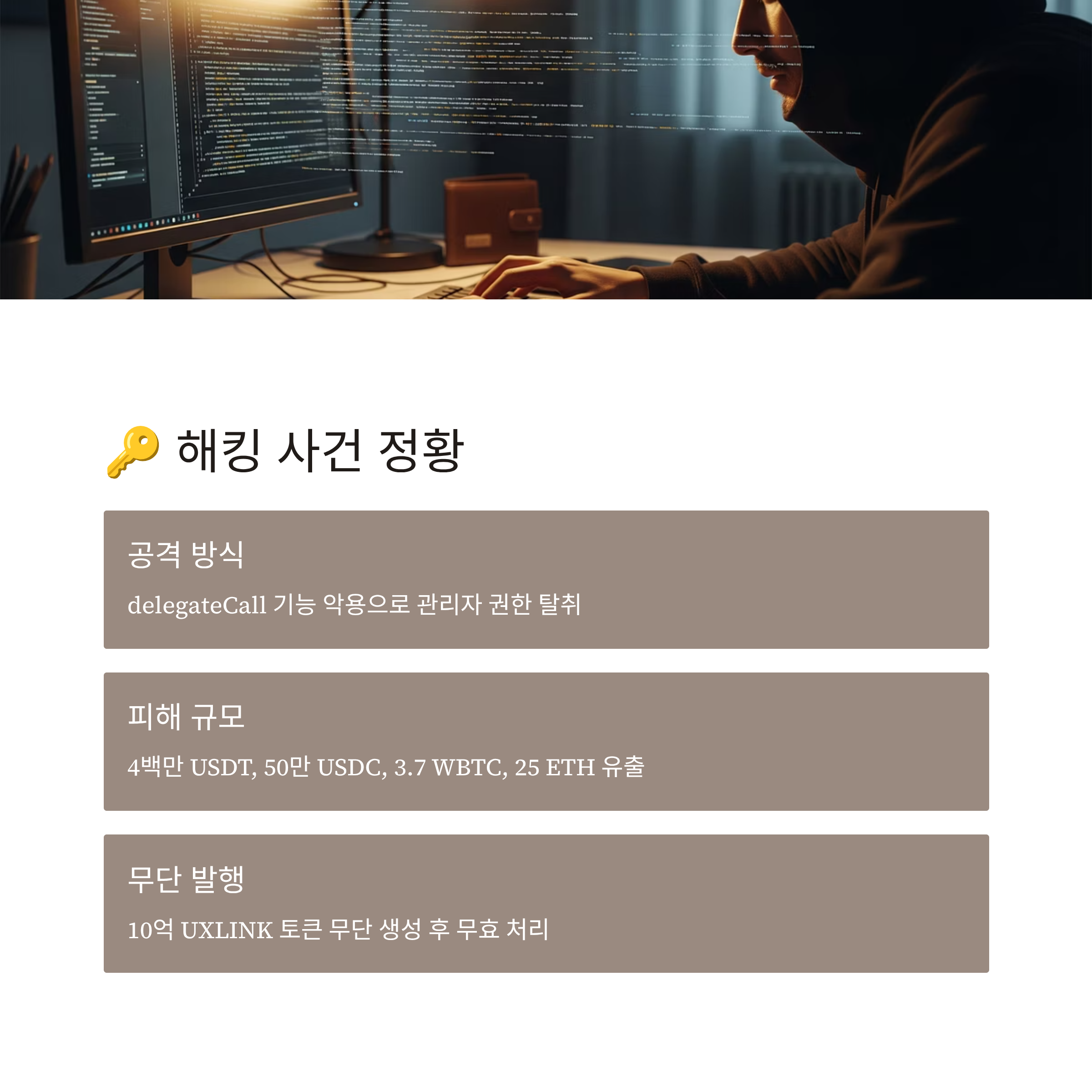 - 해커가 10억 UXLINK를 무단 발행 → 프로젝트 측은 “무효 처리” 발표.