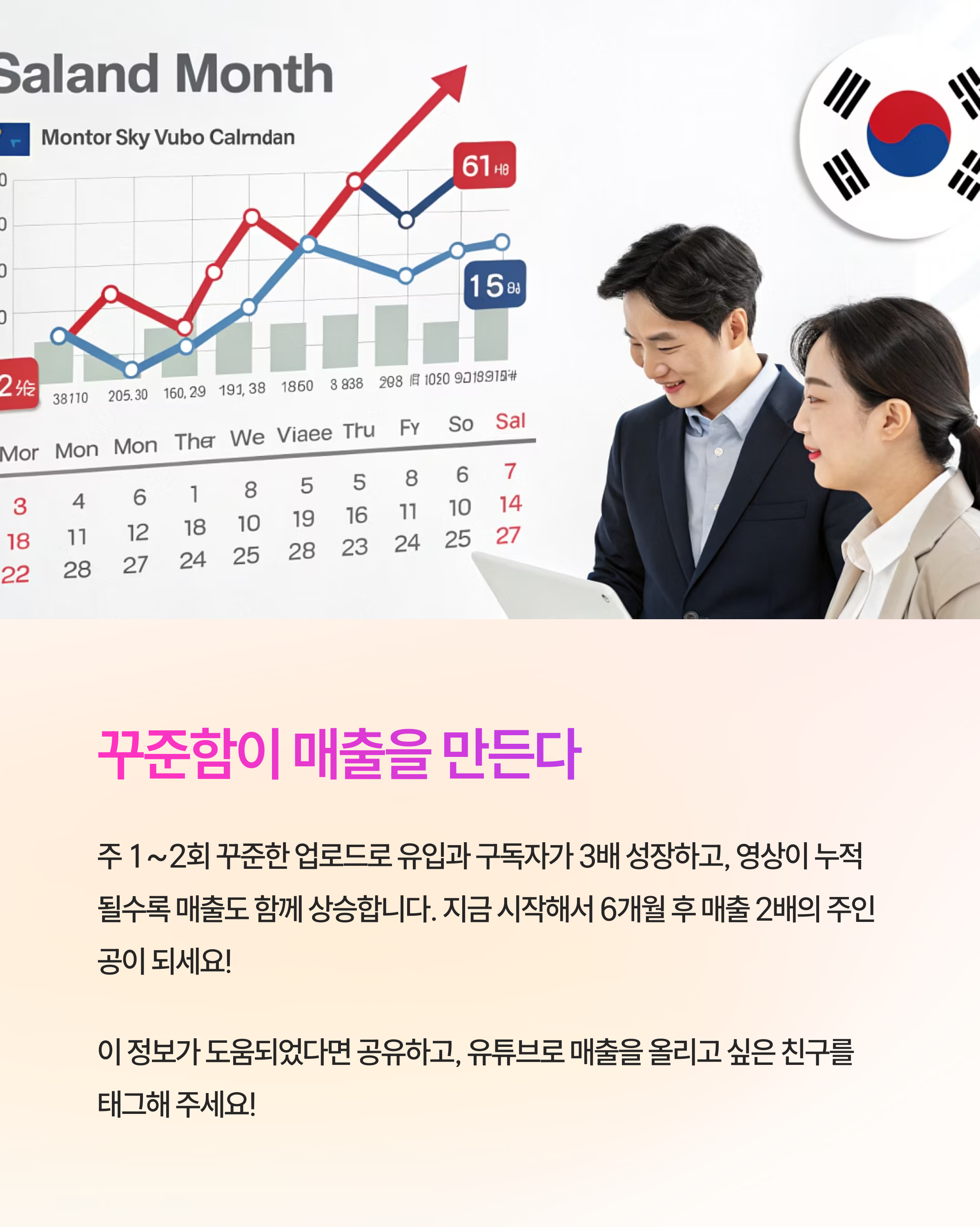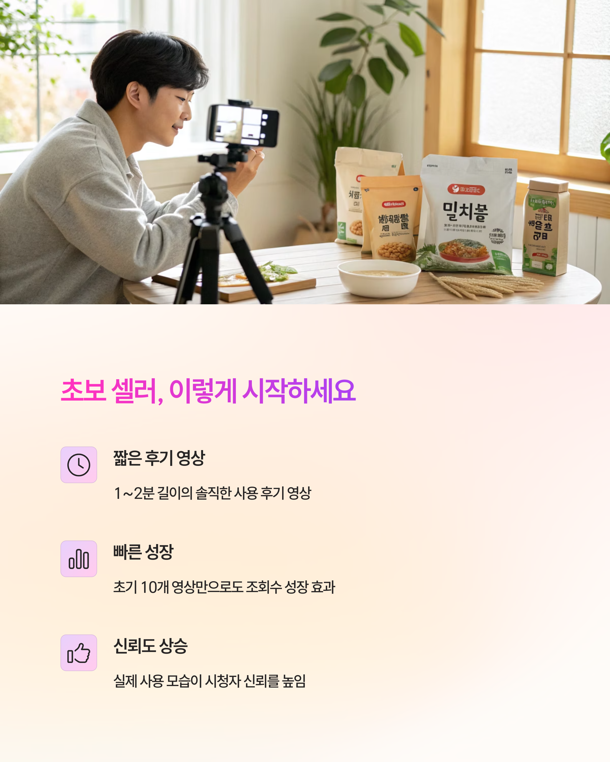 유튜브는 셀러에게 24시간 돌아가는 세일즈 채널입니다. 처음엔 조회수가 낮더라도 꾸준히 누적되는 영상, 구매로 이어지는 구조를 만든다면 분명히 매출로 연결됩니다. 지금 가장 팔고 싶은 상품이 있다면, 오늘 당장 영상 하나 만들어보세요. 어렵지 않게 시작할 수 있고, 결과는 기대 이상일 수 있습니다!