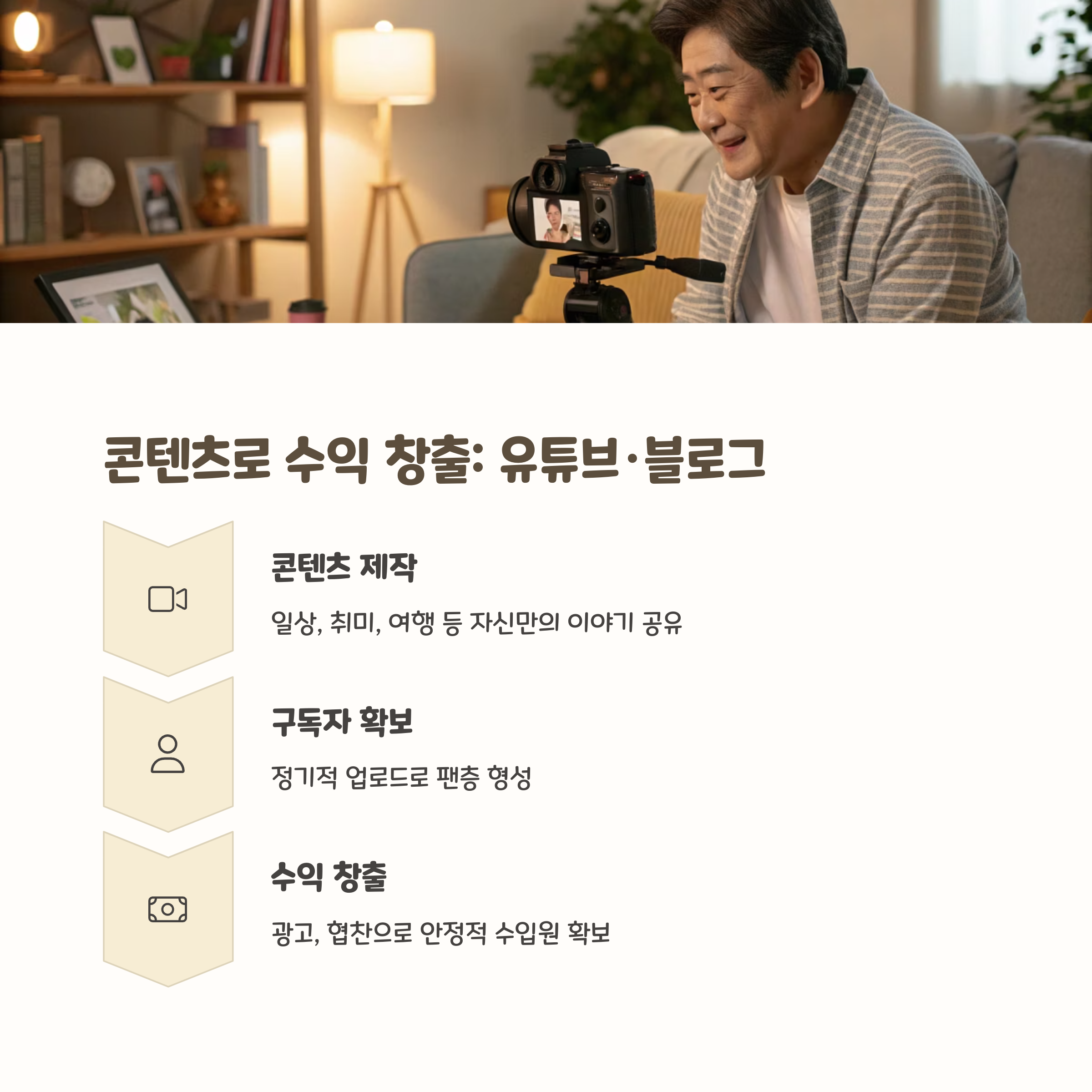 | 지속 수익 가능, 비대면 운영 | 구독자 기반 수익 창출 구조 | SNS 마케팅, 온라인 판매 연계 |