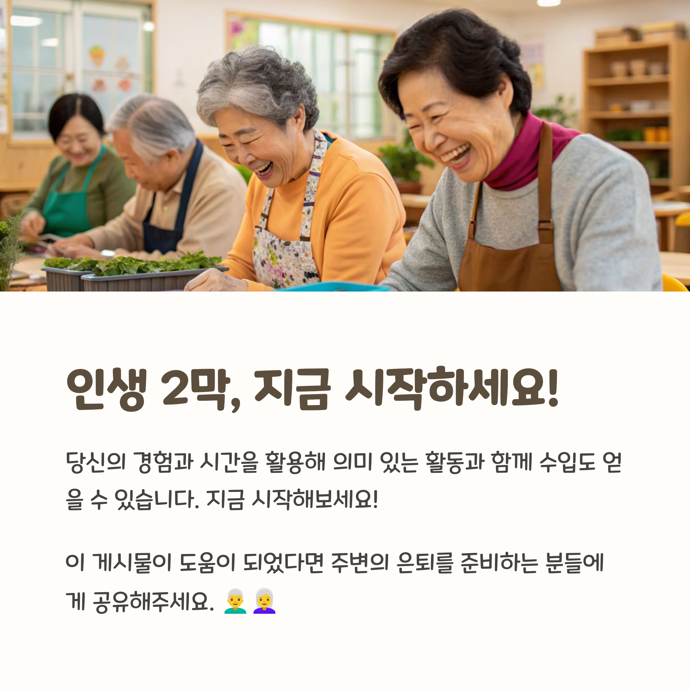 | 은퇴 후 부업 | 은퇴 후에도 꾸준한 수익과 사회 활동이 가능한 일거리 |