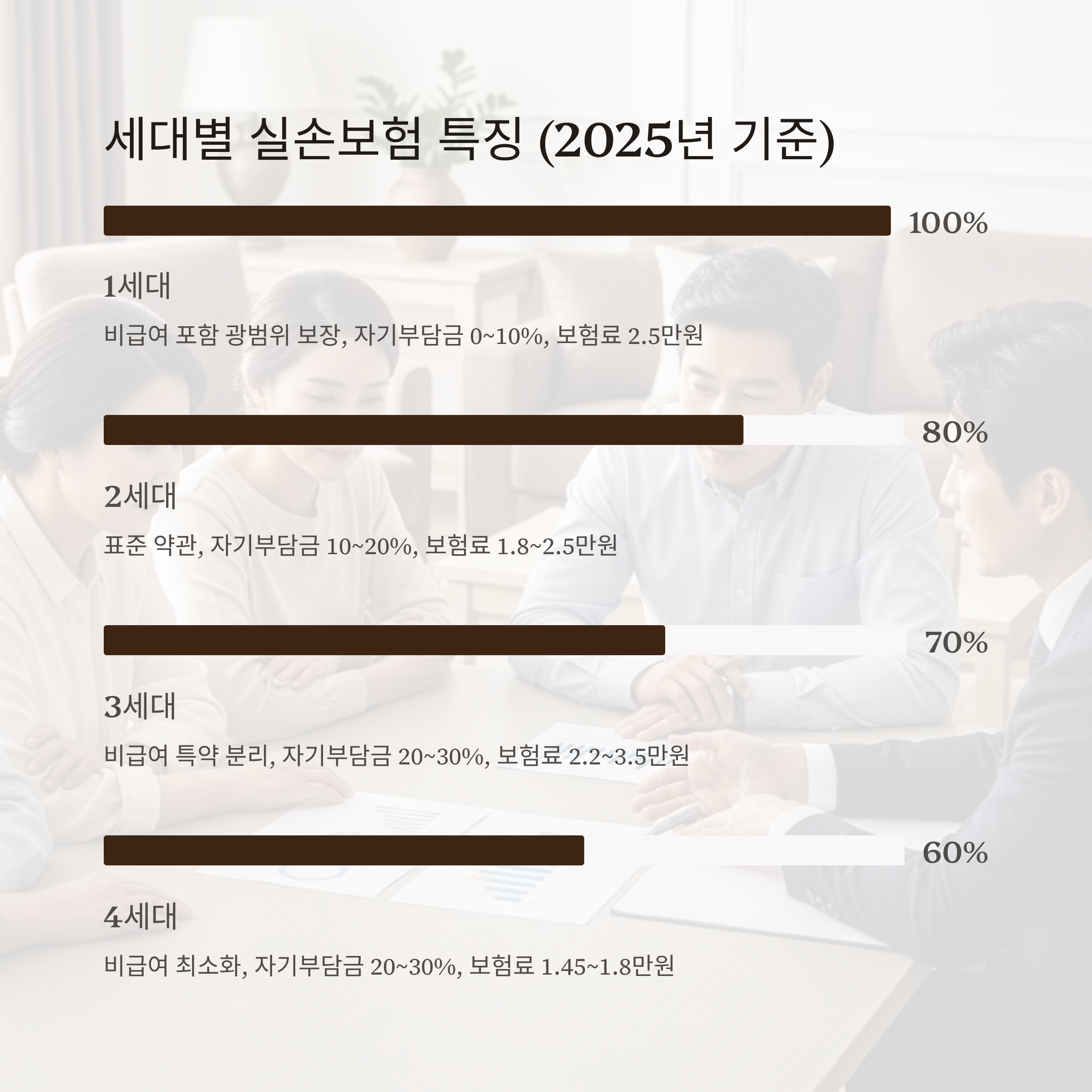 현재는 4세대가 주류이며, 비급여 보장은 특약 선택 방식으로 운영됩니다.