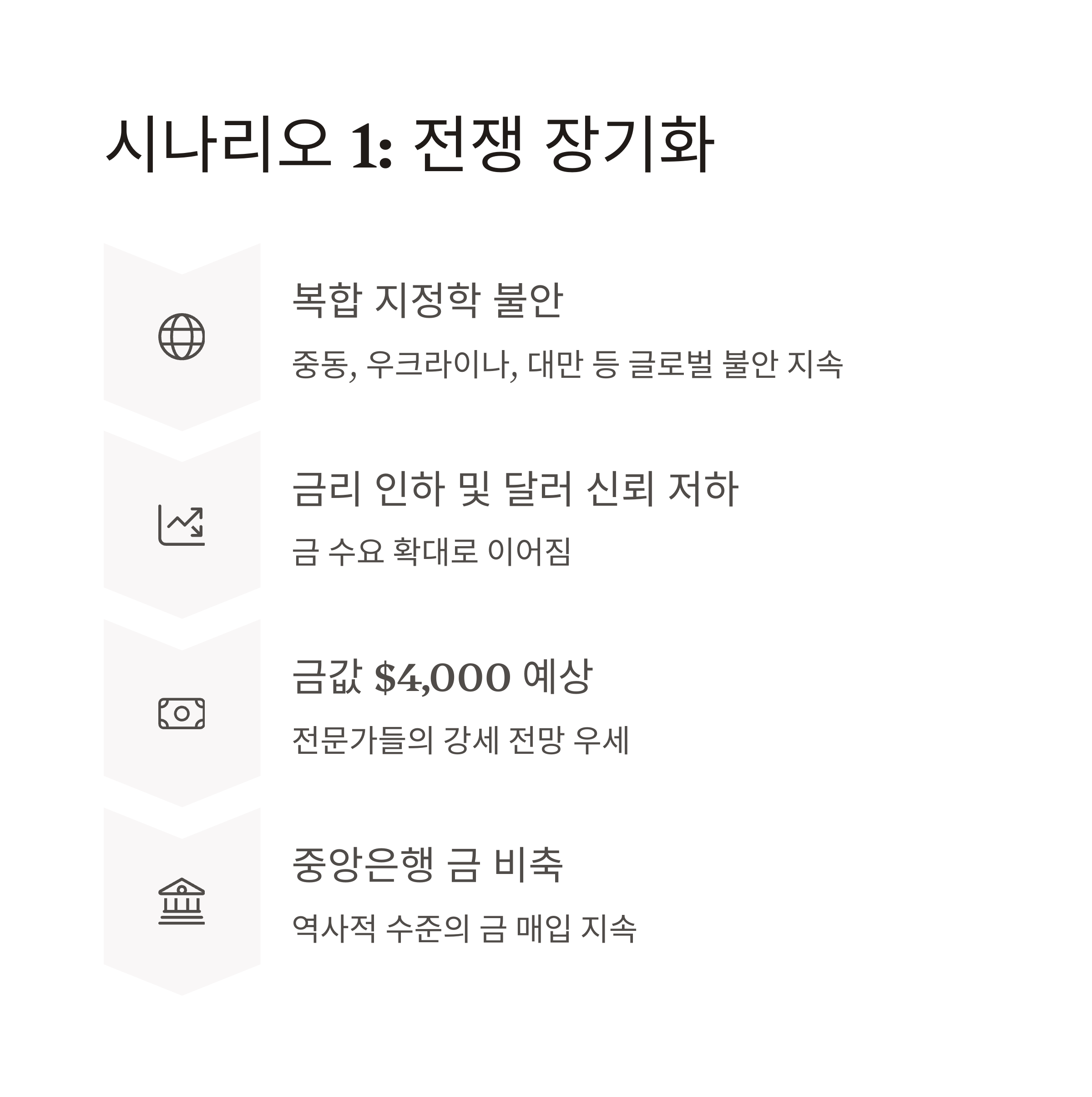 - 전쟁 장기화 → 투자자 포트폴리오 내 금 비중 확대