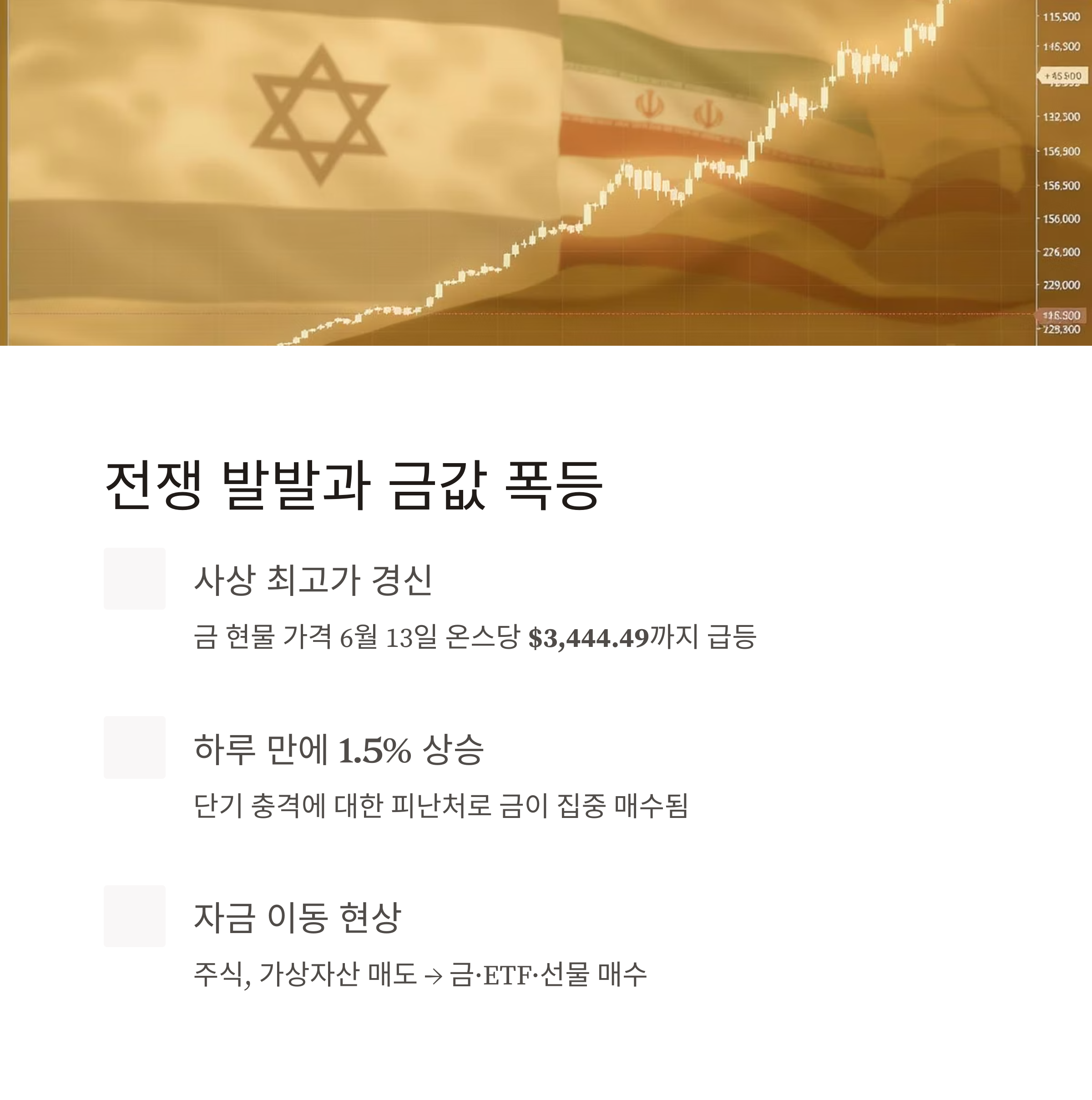 이스라엘-이란 전쟁과 금값, 안전자산인 금 사상 최고가 돌파 후 어디로 갈까?