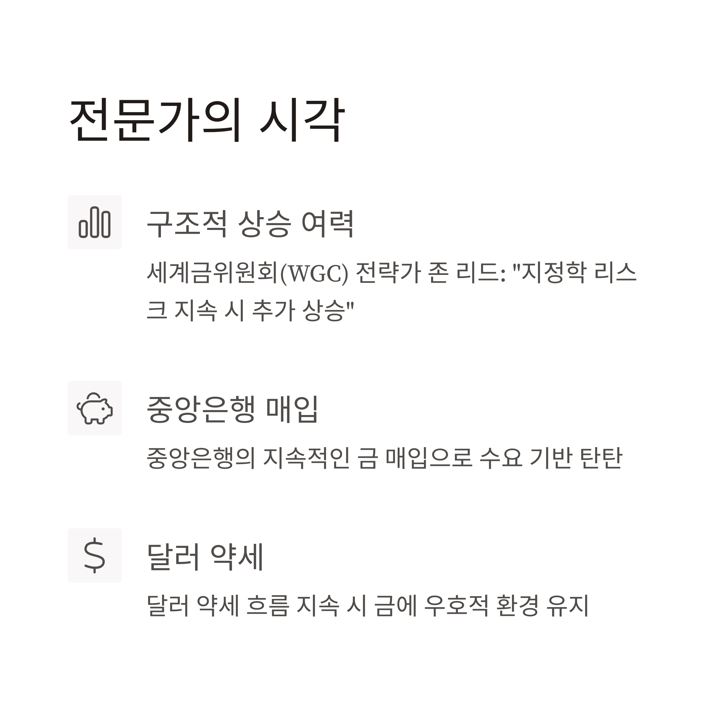 “지정학 리스크가 지속되는 한, 금은 구조적으로 추가 상승 여지가 있다”고 분석합니다