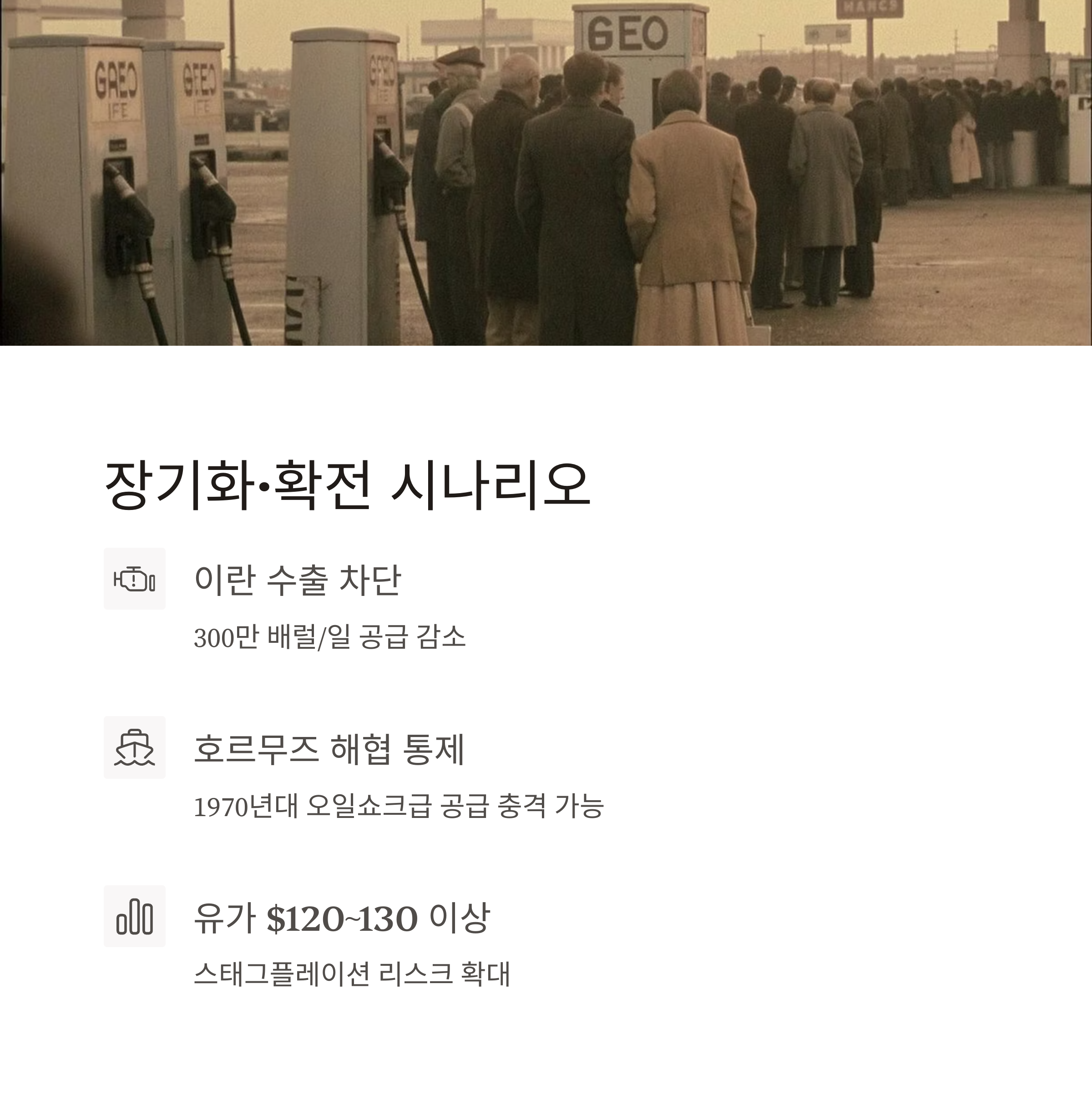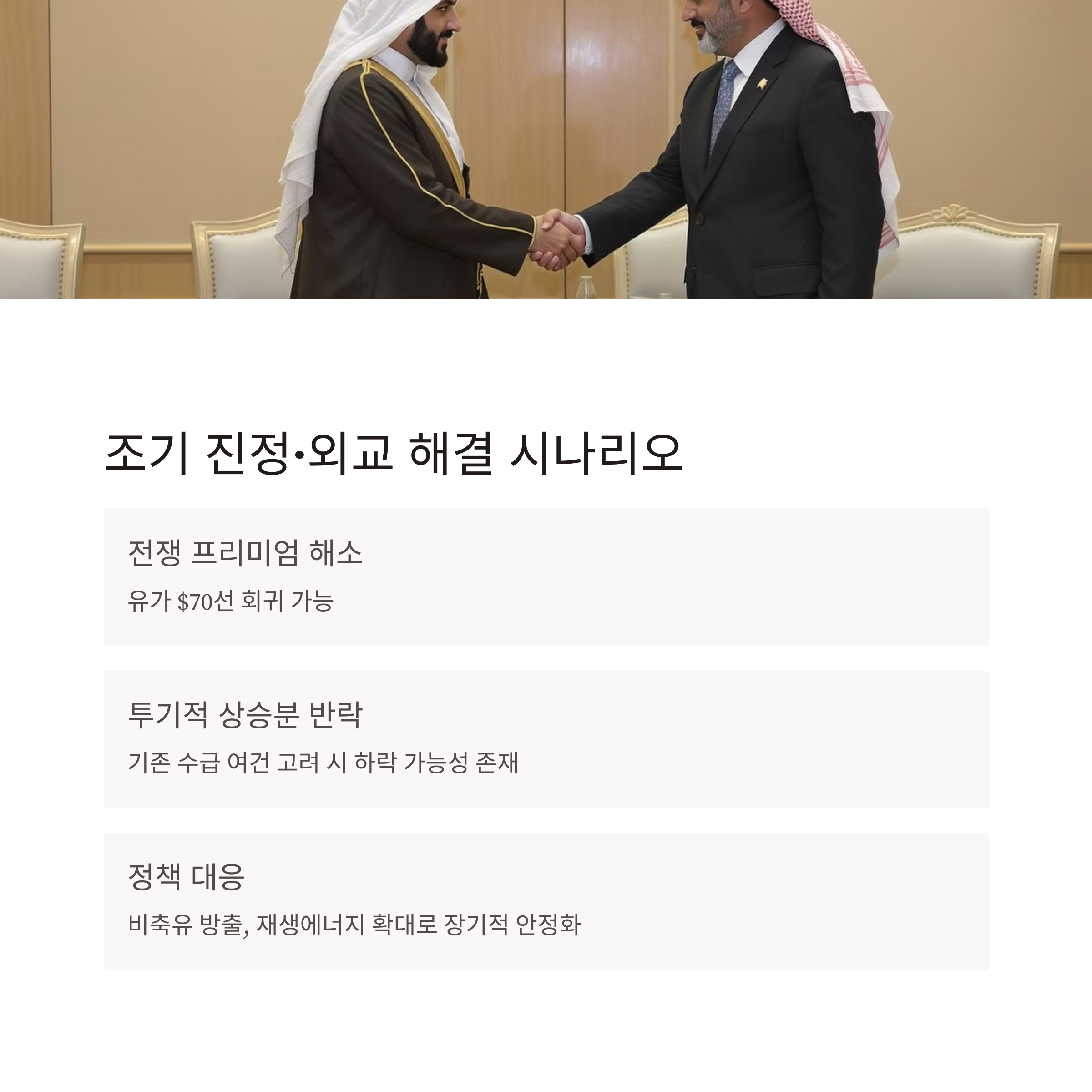 | 국지전 수준 조기 진정 | $70~80대로 빠른 안정 가능성 |