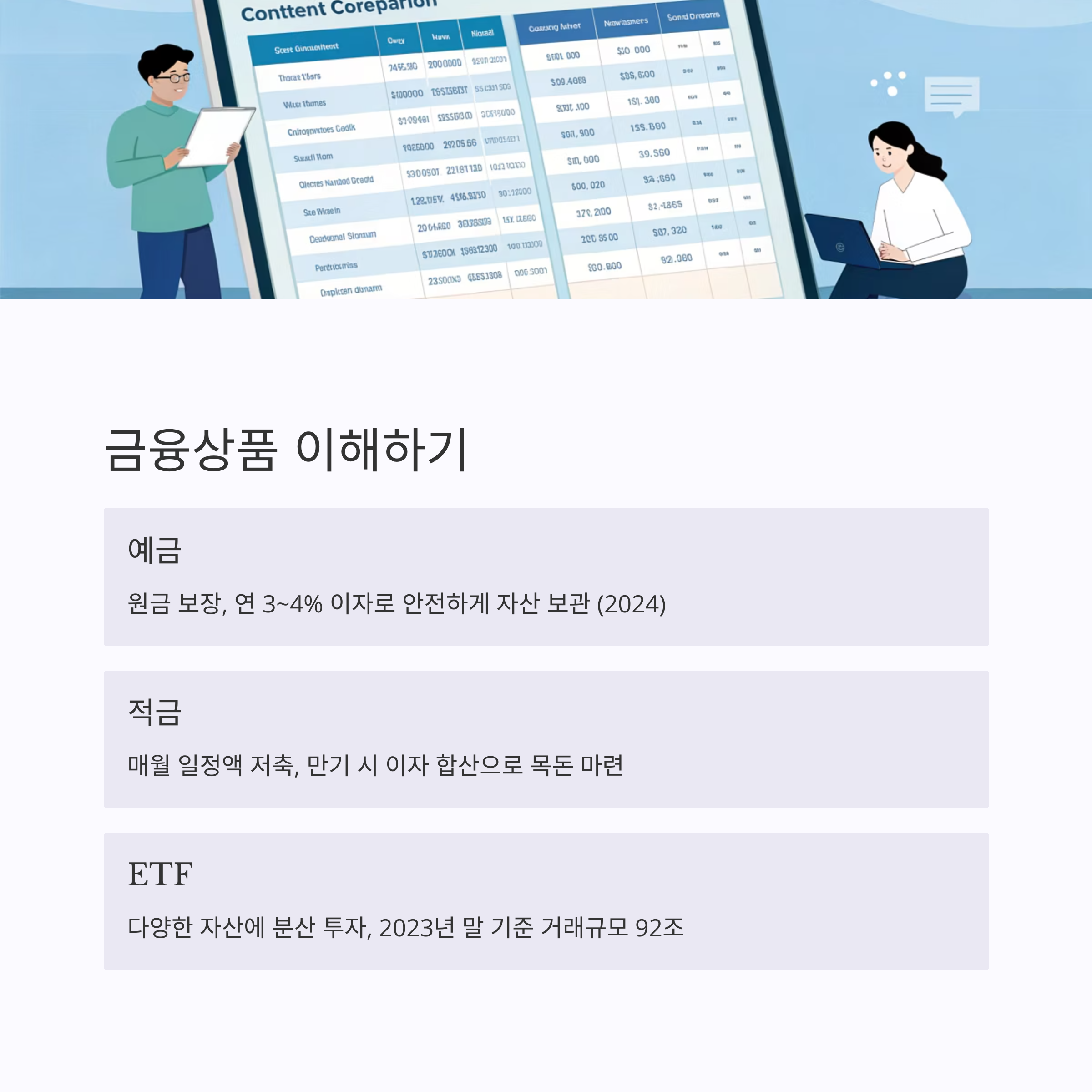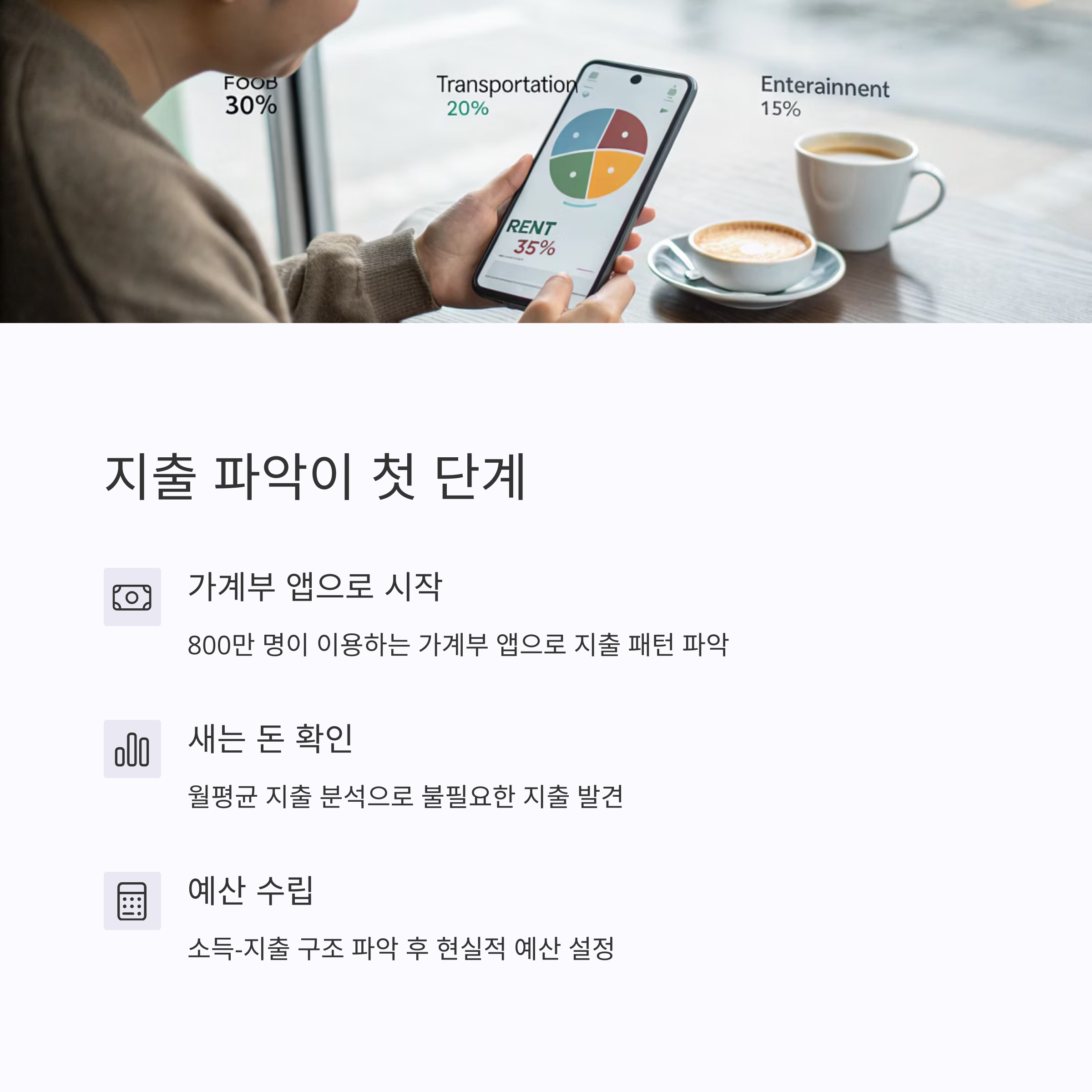 | 수입/지출 자동 분석, 앱 추천 | 월별 지출 계획 세우기 | 예금, 적금, ETF 차이점 알기 |