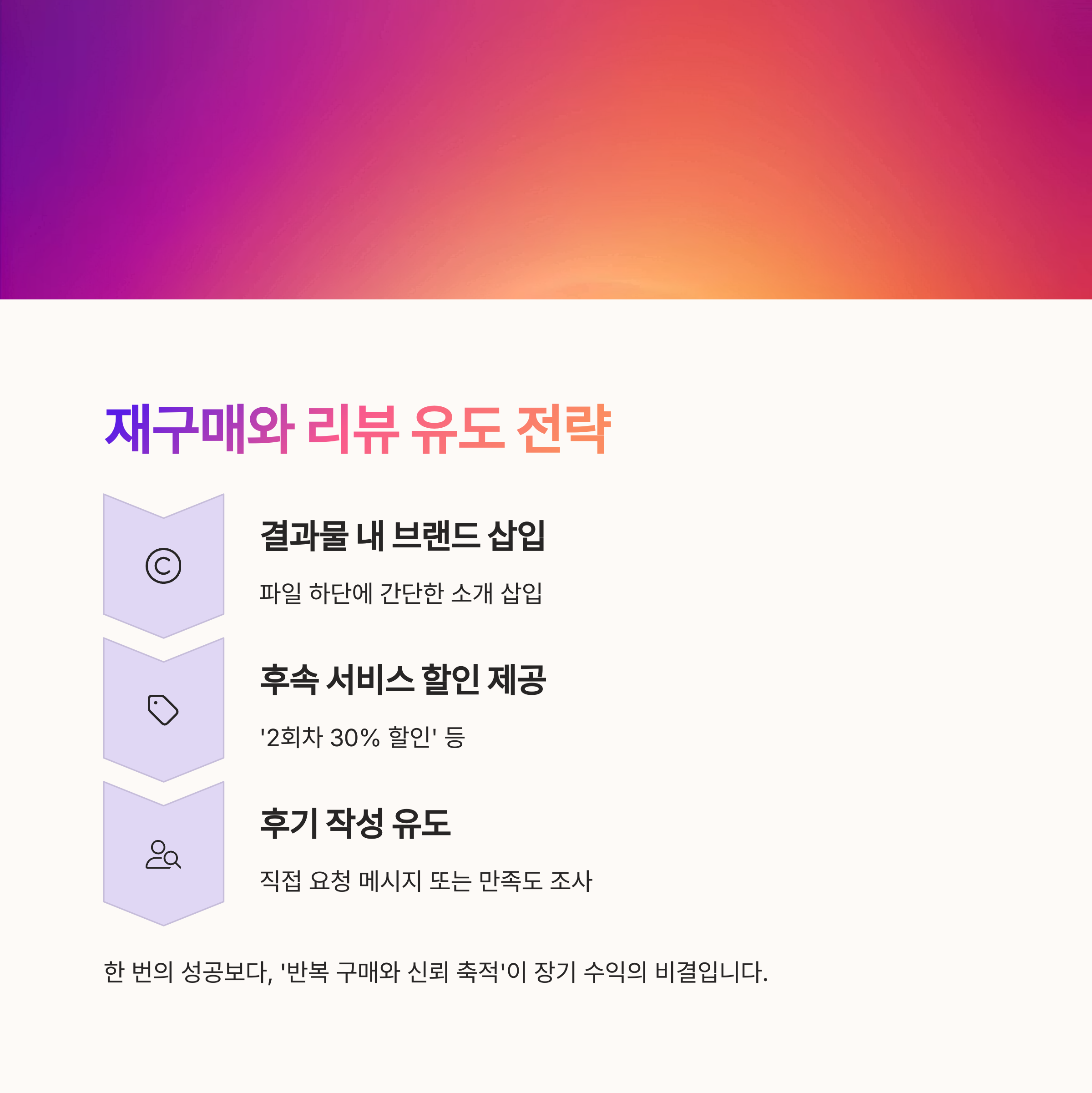 한 번의 성공보다, ‘반복 구매와 신뢰 축적’을 만드는 게 장기 수익의 비결입니다.