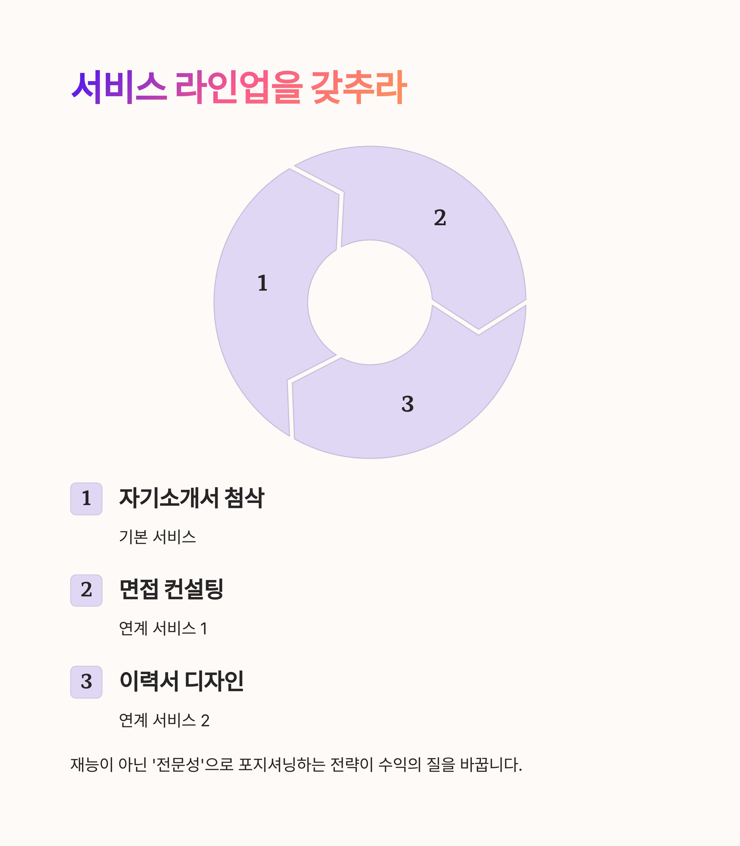 자기소개서 첨삭 → 면접 컨설팅 → 이력서 디자인