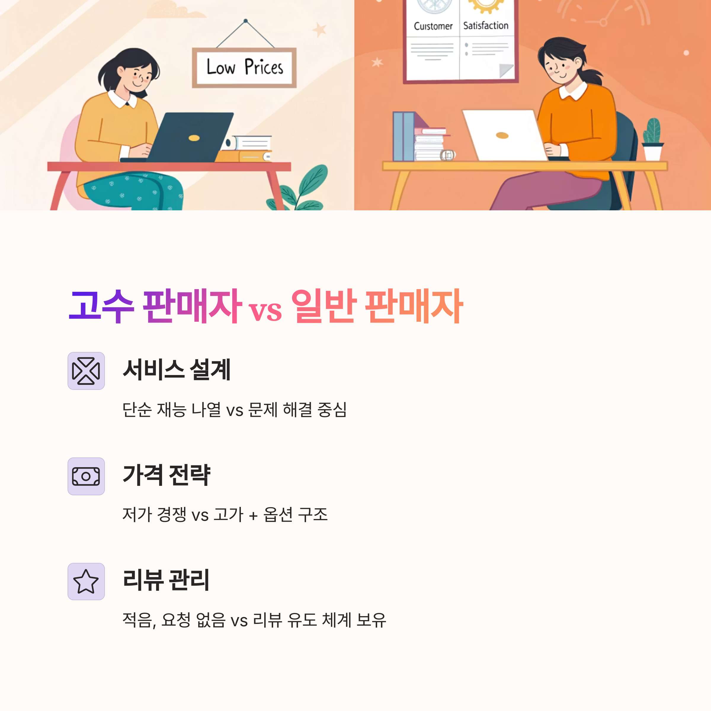 고수 판매자 vs 일반 판매자 비교 요약