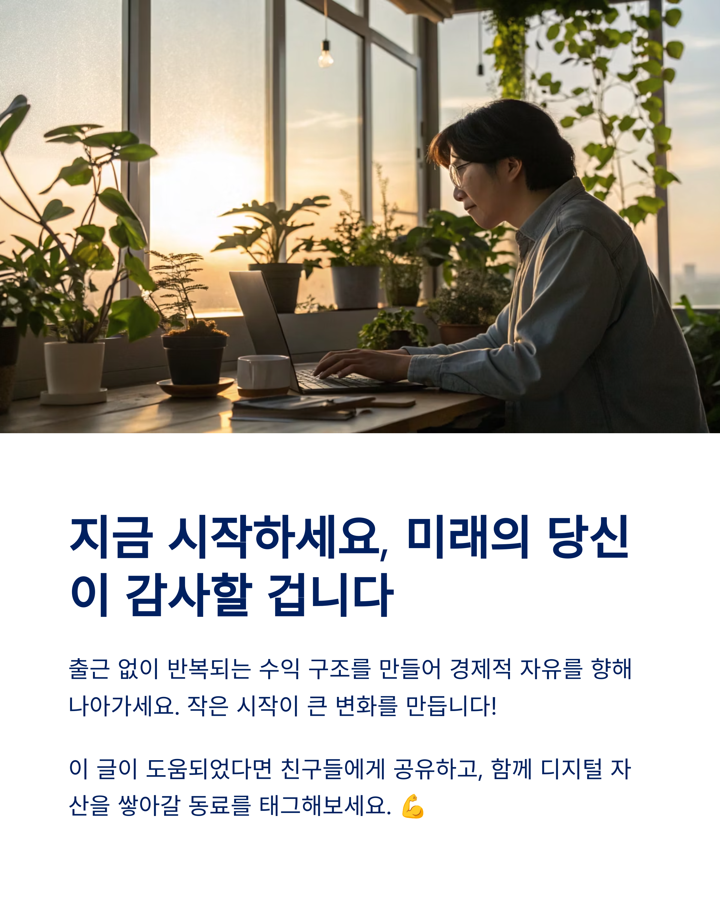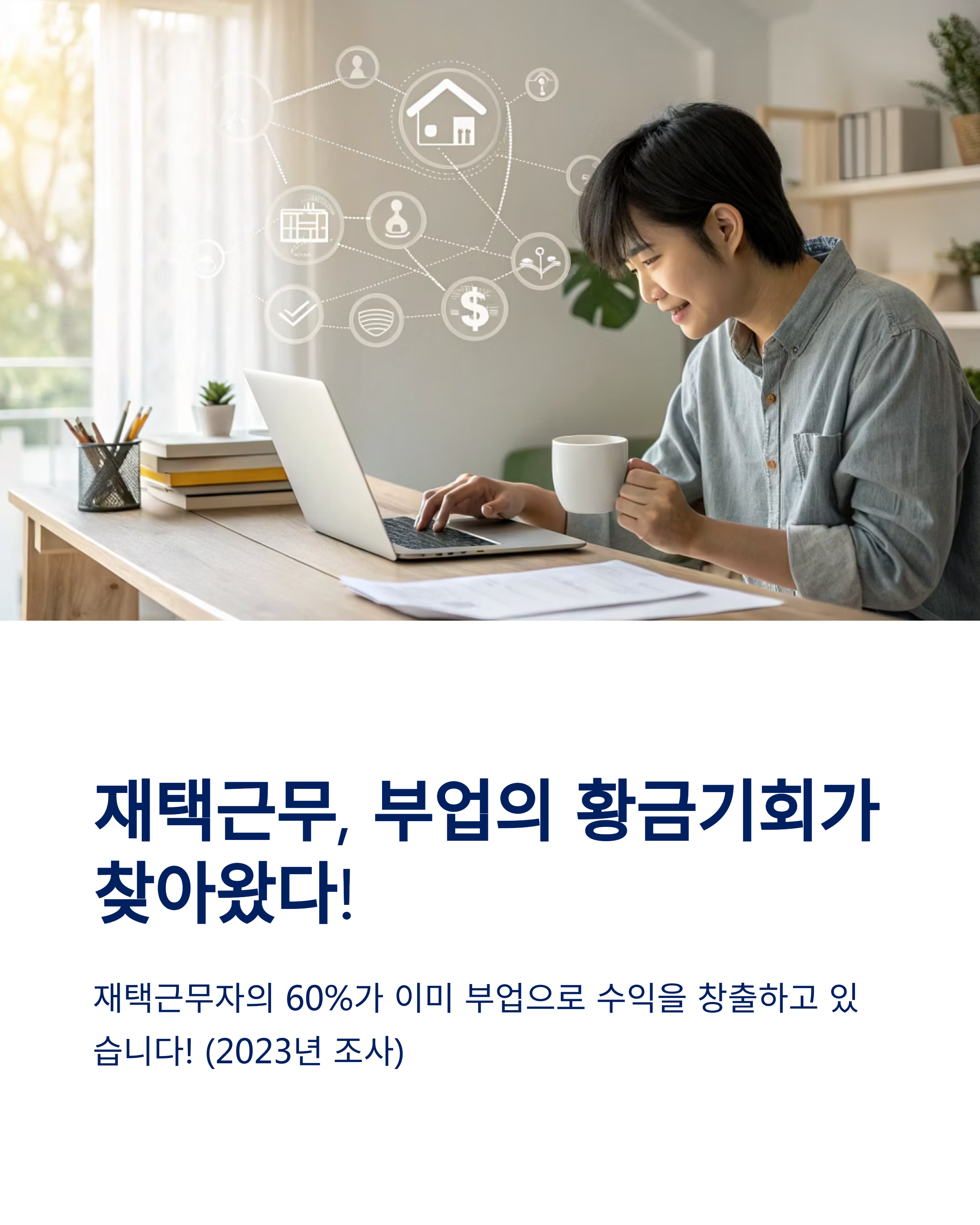 재택근무 시대에는 시간의 유연성이 생기면서 부업도 선택이 아닌 전략이 됩니다. 하루 30분 루틴, 디지털 상품화, 자동화 구조가 결합되면 출근 없이도 안정적인 수익 흐름을 만드는 루틴이 완성됩니다. 지금 할 수 있는 작은 실행부터 시작해보세요.