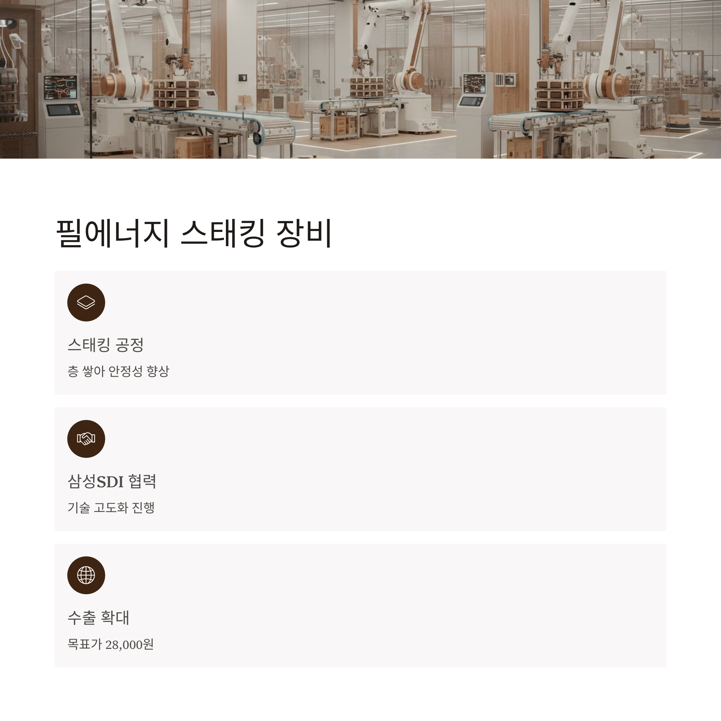 필에너지, 스태킹 장비 수출 주도 기업