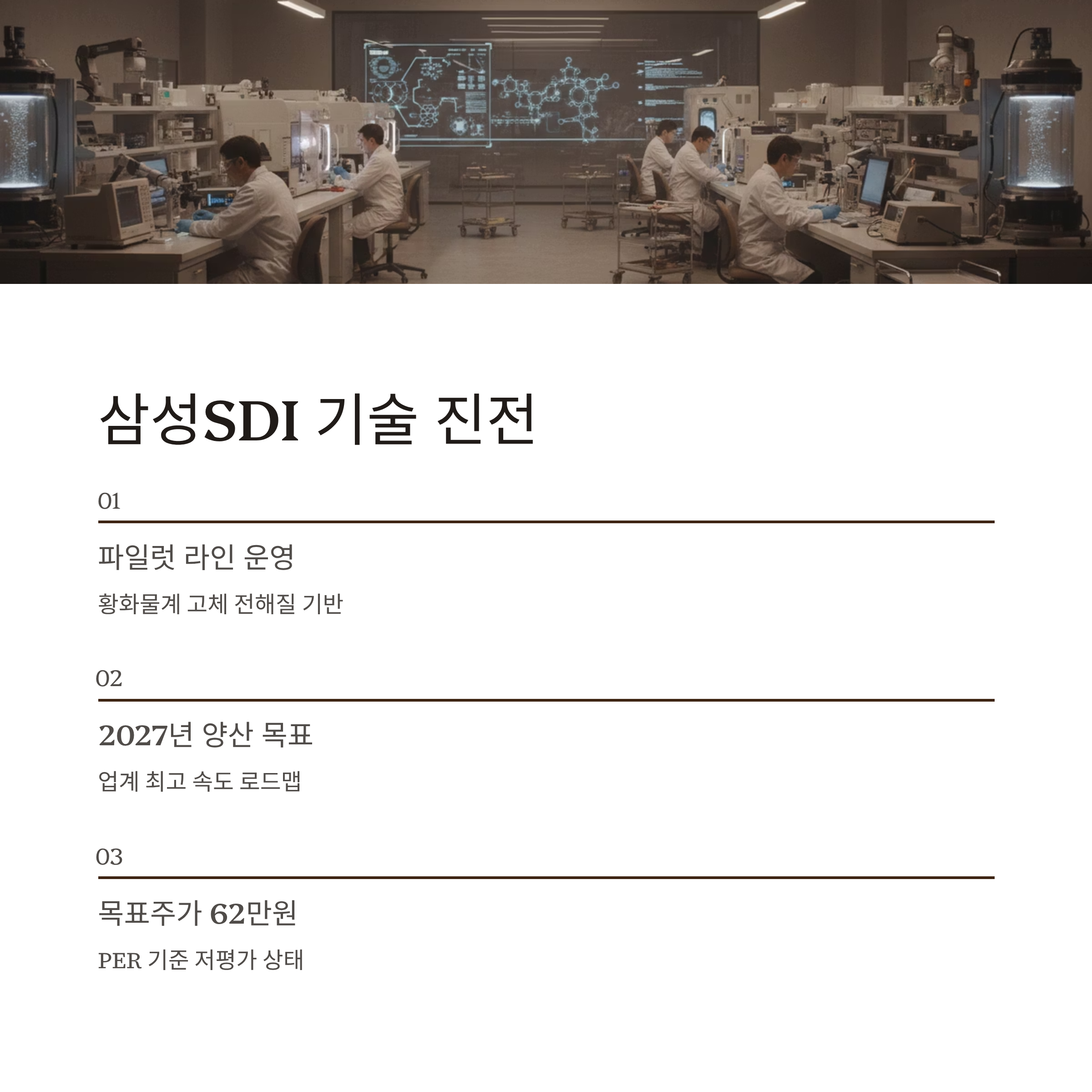 | 삼성SDI | 620,000원 | 매수 | 전고체 배터리 파일럿 가동, 기술 선도 |